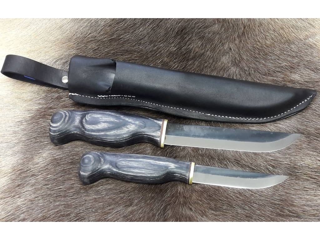 Set de două cuțite finlandeze într-o singură teacă. Kaksoispuukko iso este format din două cuțite scandinave tradiționale cu o lungime a lamei de 14,5 cm și respectiv 9,5 cm. Acestea sunt cuțite universale finlandeze, utilizate frecvent în natură, pentru vânătoare și lucru cu lemnul. Lamele sunt fabricate din oțel carbon 80CrV2, care excelează prin tenacitate ridicată. Mânerele din lemn de plywood de culoare neagră, au o formă ergonomică și sunt confortabile în mână. Aceste cuțite vin într-o teacă din piele care oferă spațiu pentru ambele cuțite.