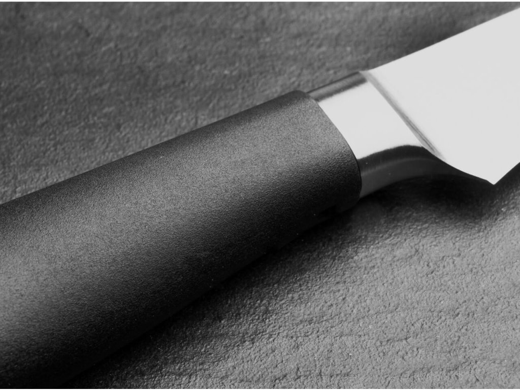Bolsterul metalic asigură o prindere sigură și vă protejează de posibile răni în cazul alunecării. Un element de design special al acestei serii este spatele ușor rotunjit al lamei, care face cuțitul ușor de manevrat și previne presiunea neplăcută asupra mâinii, chiar și atunci când curățați ingrediente mai dure.