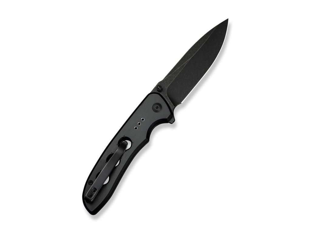 Cuțit pliabil cu un design inovator. Lamă din oțel suedez 14C28N. Mâner din aluminiu negru. Lungimea lamei 8,8 cm, lungime totală 20,2 cm.