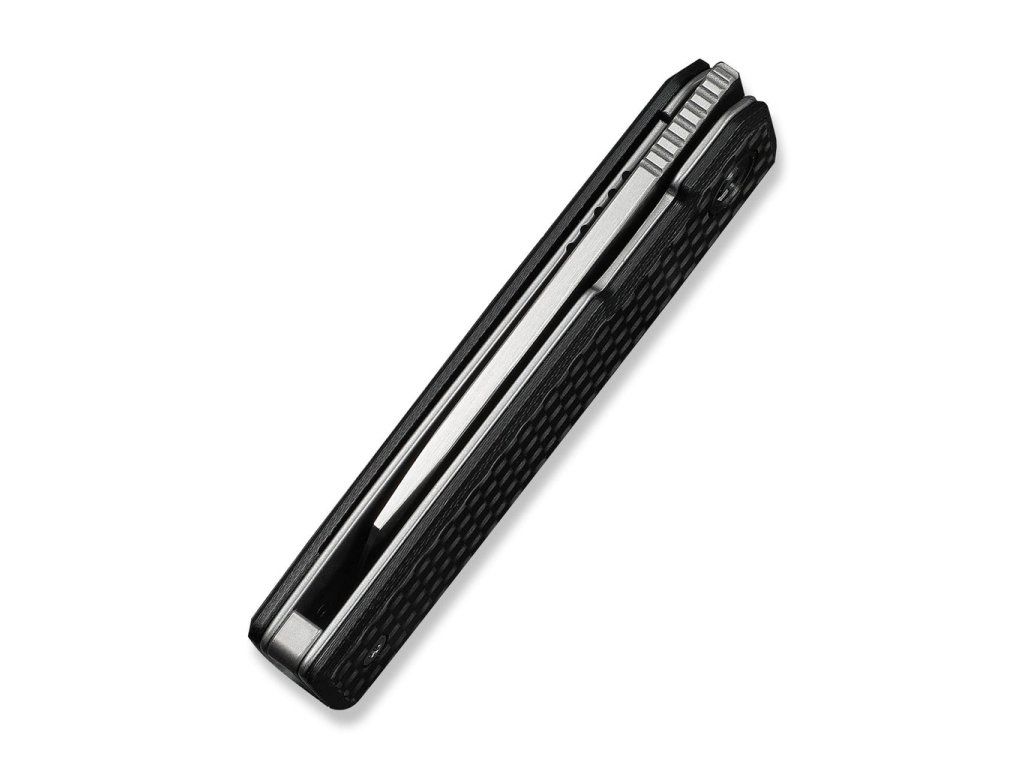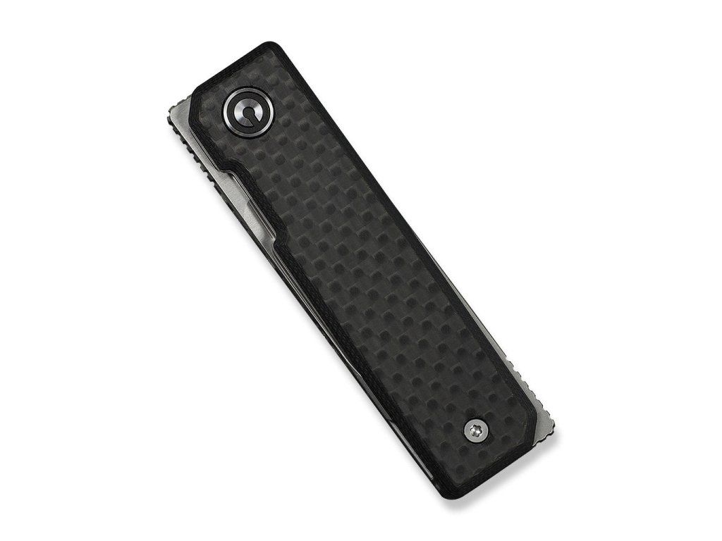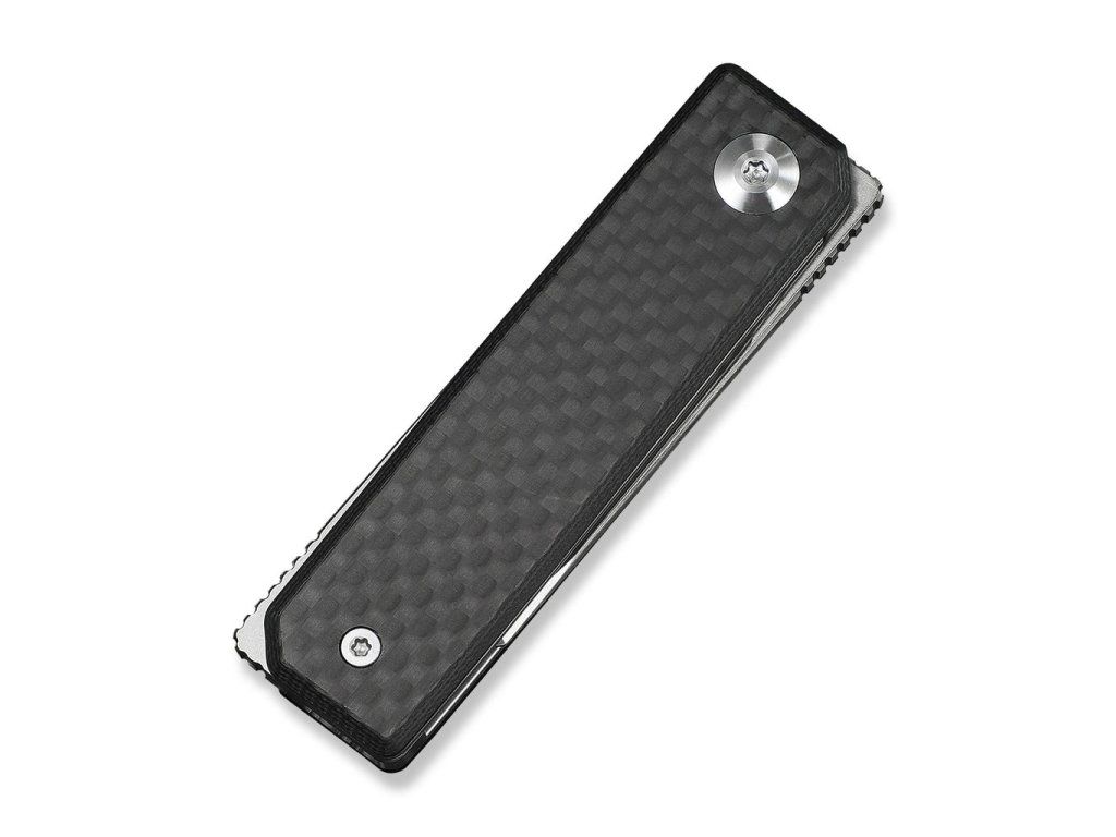 Mânerul este din G10 negru cu un strat de carbon la suprafață. Deschidere cu ajutorul unui flipper frontal. Blocare a lamei liner lock. Lama este montată pe rulmenți ceramici.