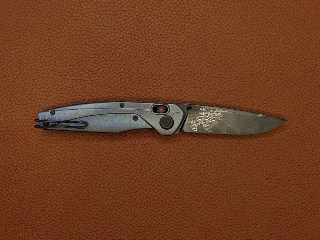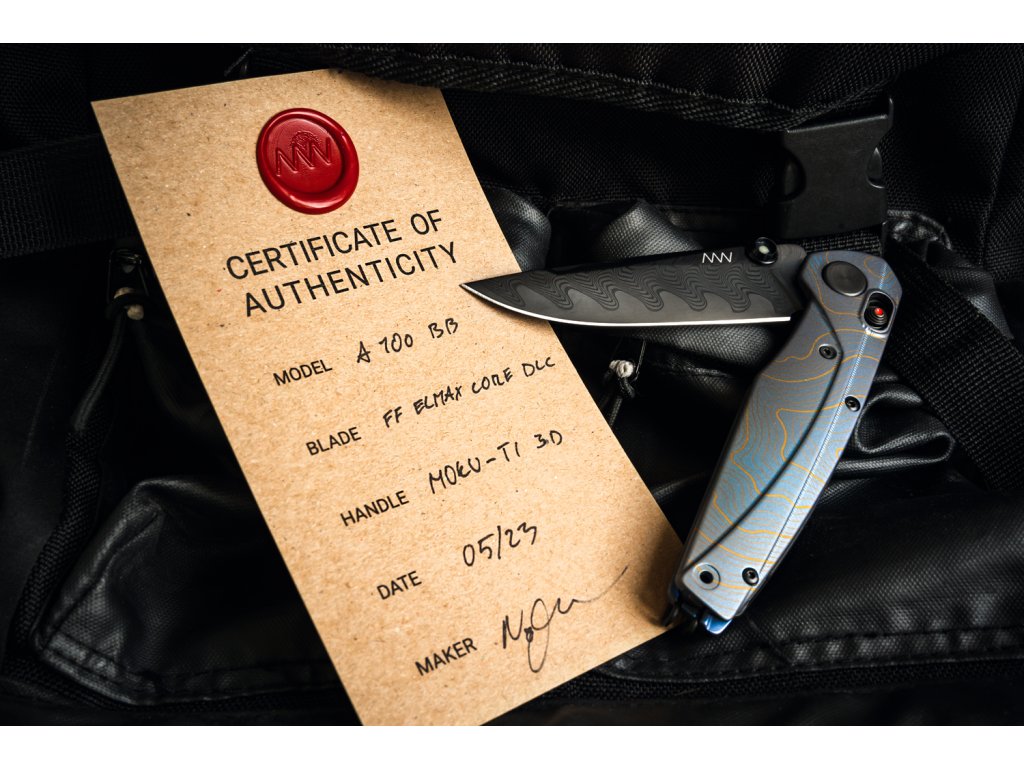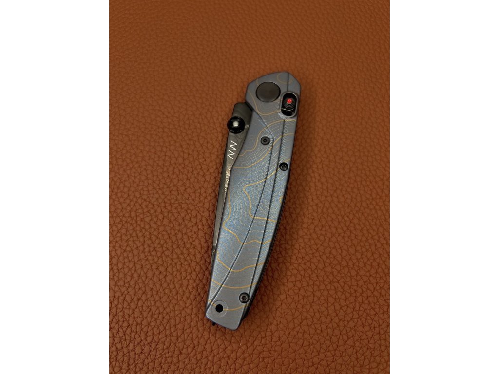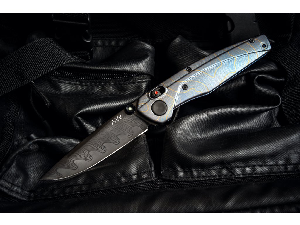 Oțelul este călit la 60 – 61 HRC cu finisaj DLC, care asigură o rezistență mai mare a lamei și, în același timp, previne reflexiile nedorite. Forma lamei drop point cu tăiș tip flat grind asigură proprietăți de tăiere perfecte. Deschidere cu o singură mână cu ajutorul unui știft de pe lamă, care are în centru un punct luminescent. Blocarea lamei A-lock este foarte sigură și confortabilă atât pentru dreptaci, cât și pentru stângaci.