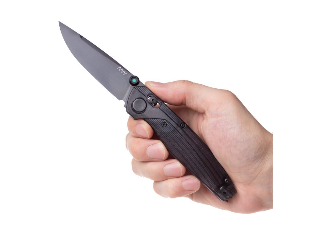 Cuțitul pliabil ANV A100 este un cuțit EDC ușor și durabil, cu un design elegant. Lama A100 este fabricată din oțel Elmax duritate 60 HRC, cu finisaj DLC pentru a asigura o durabilitate mai mare a lamei, prevenind în același timp reflexiile nedorite. Lama cu un tăiș flat grind asigură proprietăți de tăiere perfecte. Lama este montată pe rulmenți cu bile ce asigură o funcționare lină.