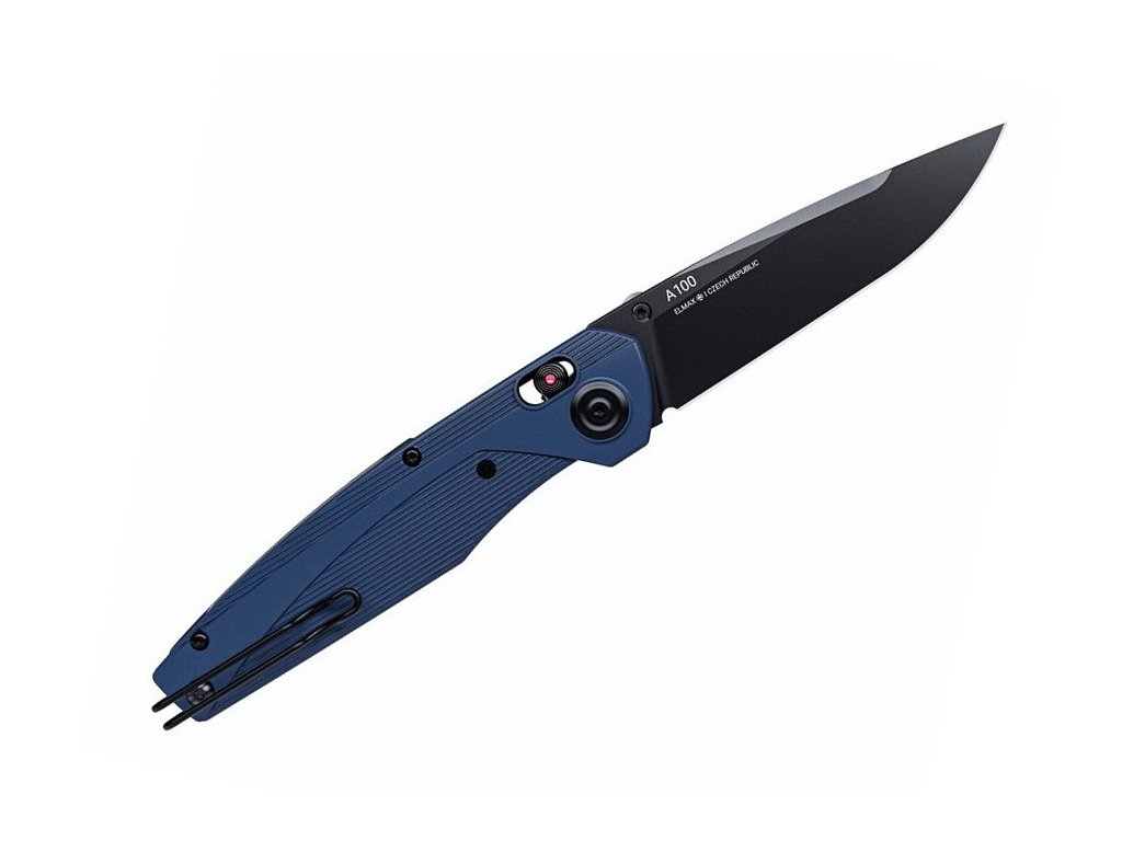 Mânerul este fabricat din GRN albastru (material compozit puternic și durabil) cu finisaj anti-alunecare. Deschidere cu o singură mână prin intermediul unui știft de pe lamă, care are un punct luminescent în centru.