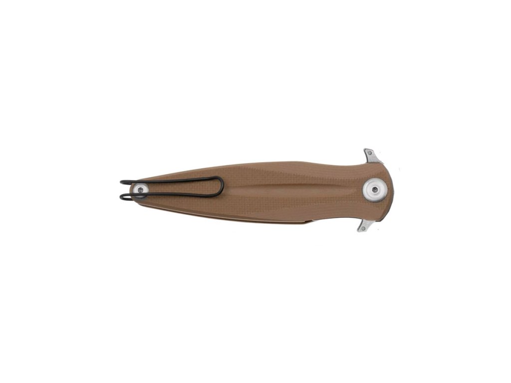 Mânerul este realizate din G10 coyote cu o textură anti-alunecare. Clemă deep carry pentru a asigura o purtare confortabilă și discretă, indiferent dacă purtați camuflaj sau un costum.