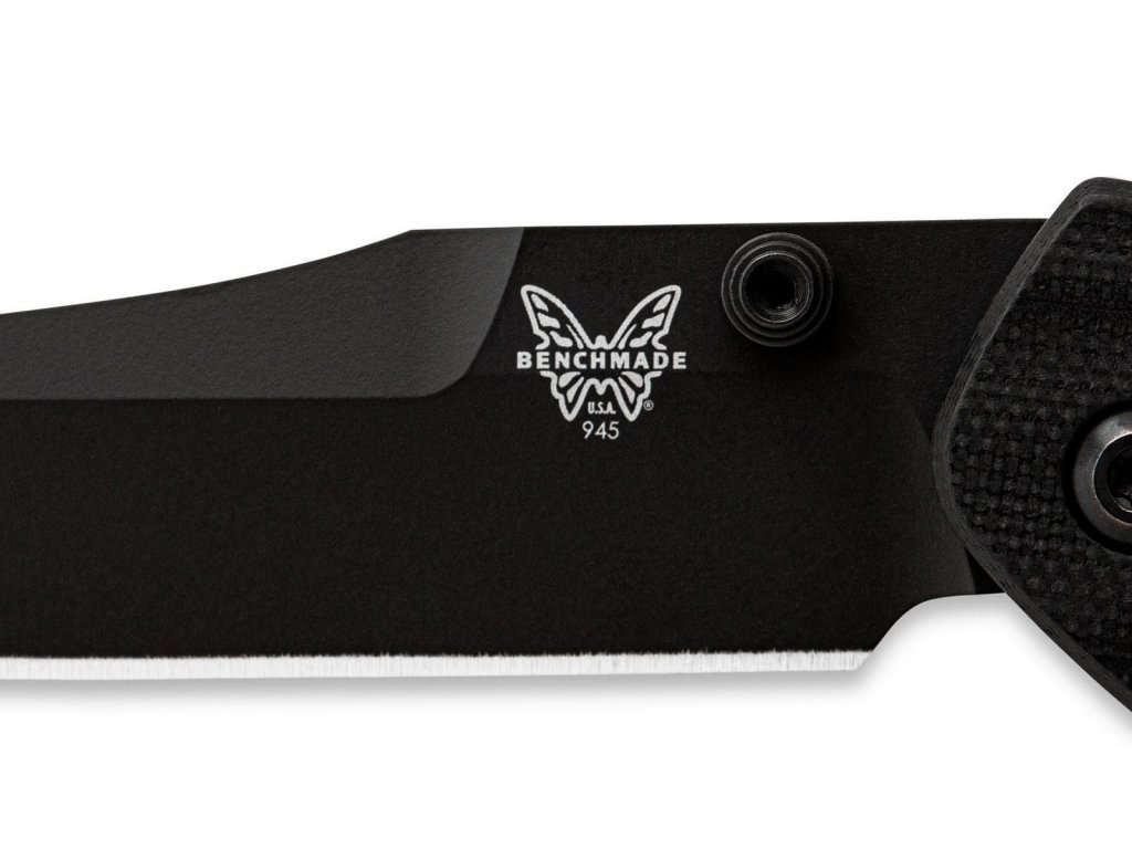 Benchmade Mini Osborne 945 este o versiune mai mică a legendarului model 940, considerat de mult timp drept unul dintre cele mai bune cuțite EDC din toate timpurile. Este subțire, elegant și poate funcționa în aproape orice situație. Mini Osborne 945 are lama de lungime 7,42 cm din oțel inoxidabil premium CPM S30V (duritate 58-60 HRC), finisaj negru, tăiș flat grind și formă reverse tanto. Mâner din G10 de culoare neagră. Cuțitul are un clips care se poate fixa pe ambele părți. Cuțitul este, prin urmare, potrivit atât pentru utilizatorii dreptaci, cât și pentru stângaci. Tip de blocare a lamei Axis Lock. Deschidere cu o singură mână prin intermediul unui știft pe lamă. Cuțitul este fabricat în SUA.
