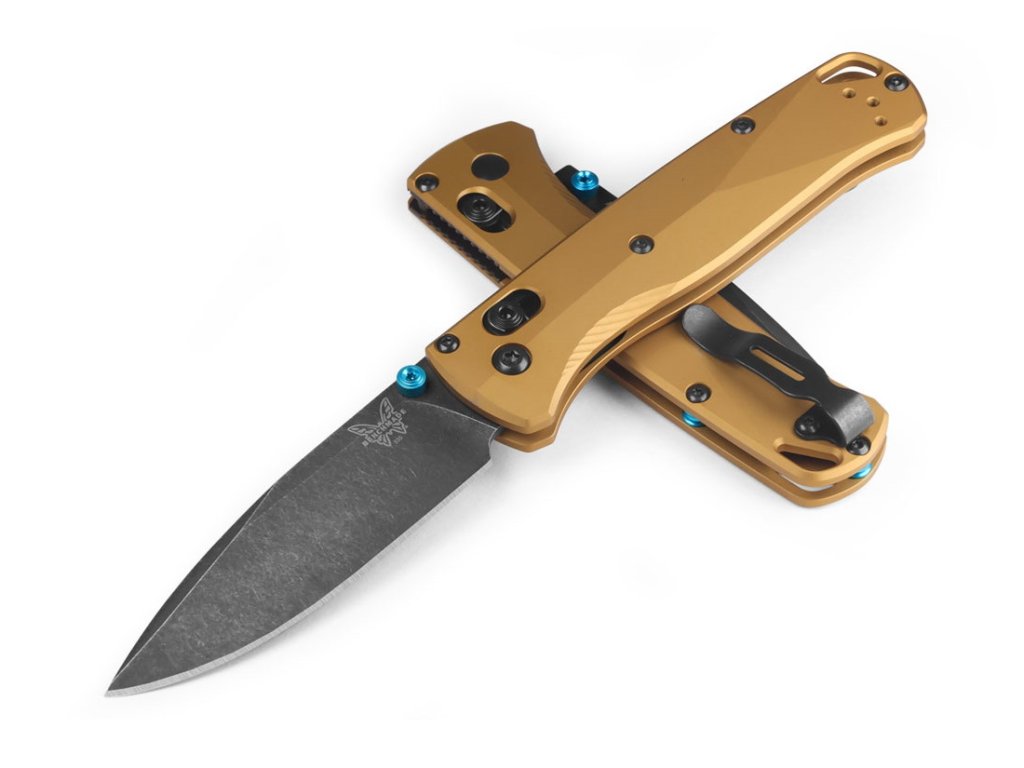 Benchmade Bugout este de mult timp unul dintre cele mai populare cuțite pliabile EDC (pentru uz zilnic). Este fabricat din materiale premium, ușor, subțire și ergonomic în același timp. Greutatea lamei este de numai 71 de grame, în ciuda mânerului metalic.