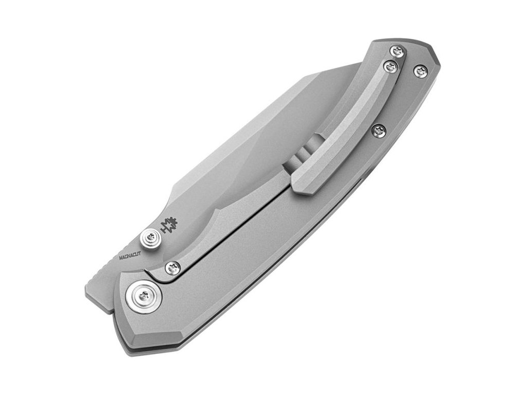 Cuțitul pliabil exclusivist Bestech Clastic Frame Lock White cu lungimea lamei de 9,2 oferă materiale de cea mai bună calitate și o ascuțime excelentă. Lama este fabricată din oțel inoxidabil superior CPM-Magna Cut cu finisaj white bead și o duritate extraordinară de 61-63 HRC. Cuțitul se deschide extrem de ușor datorită rulmenților ceramici. Blocare de tip frame lock.. Mânerul este complet realizat din titan gri cu finisaj bead blast.