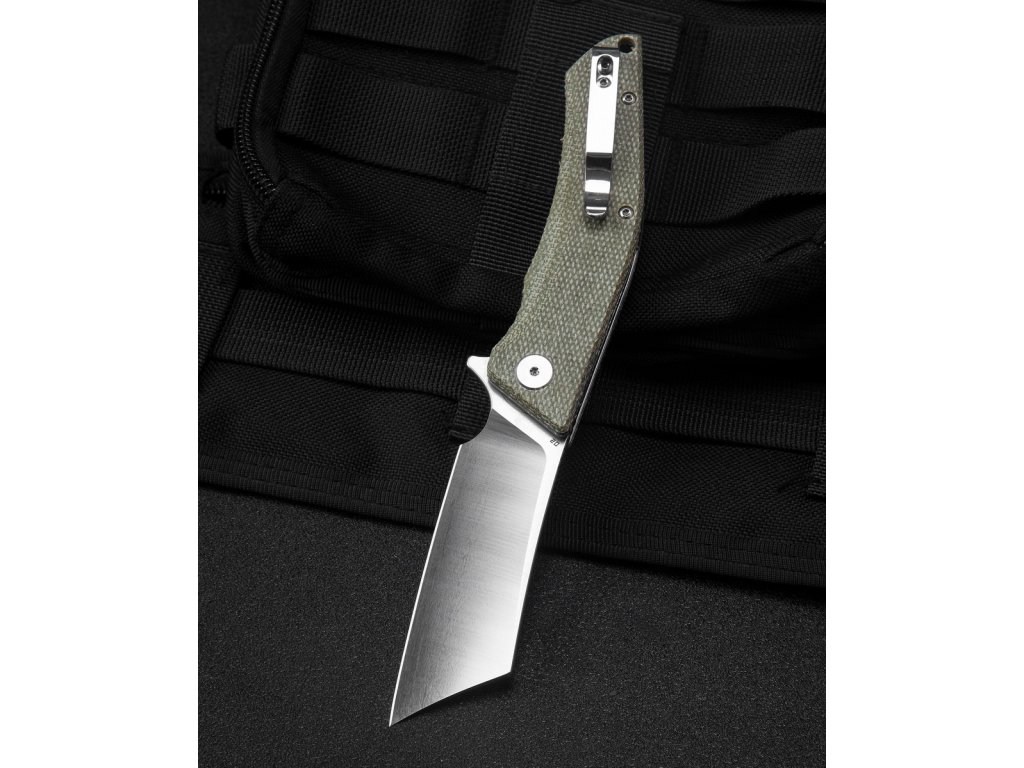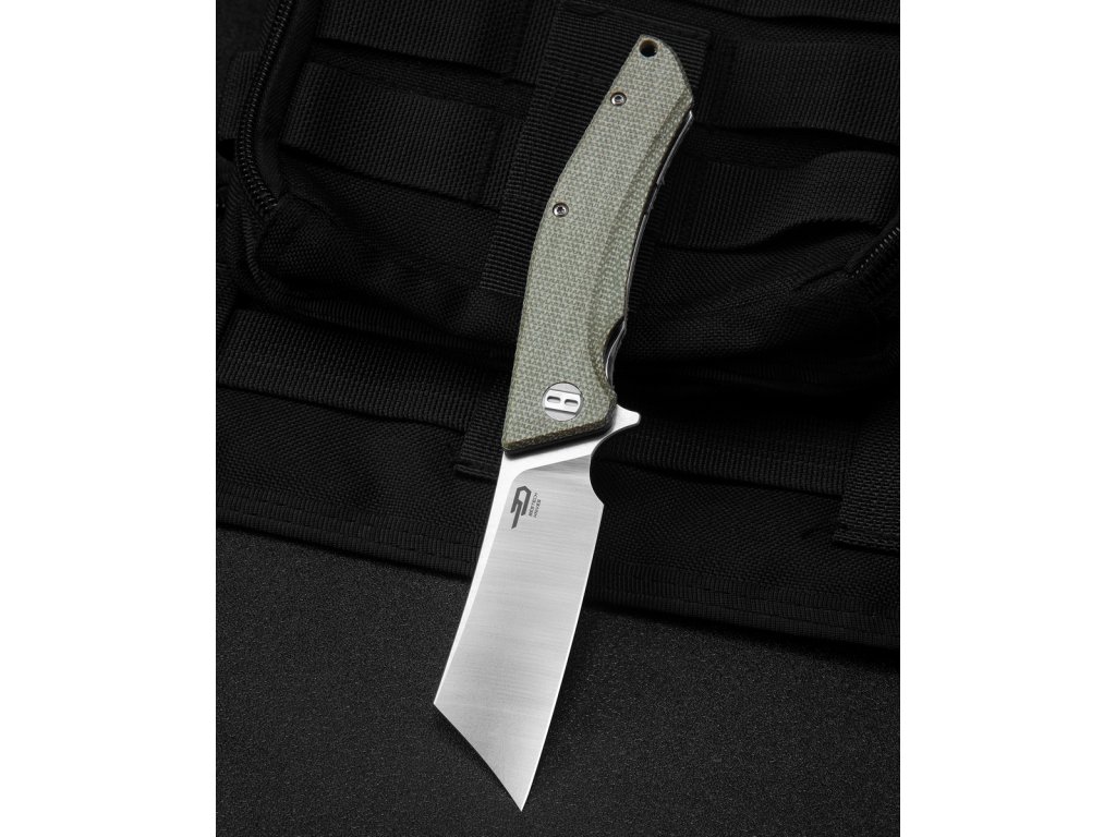 Bestech Cubis este un cuțit pliabil de dimensiuni medii cu o formă neobișnuită a lamei (tanto modificat), potrivit pentru utilizarea zilnică. Lama din oțel pentru unelte D2, tăiș tip flat grind, cu finisaj mat, are o lungime de 8 cm și este montată pe rulmenți ceramici, ceea ce face deschiderea cuțitului ușoară și lină. Mâner din micarta de culoare verde. Tip blocaj Liner Lock. Clemă din oțel pentru agățare. Deschidere cu o singură mână cu ajutorul unui știft pentru deschidere.