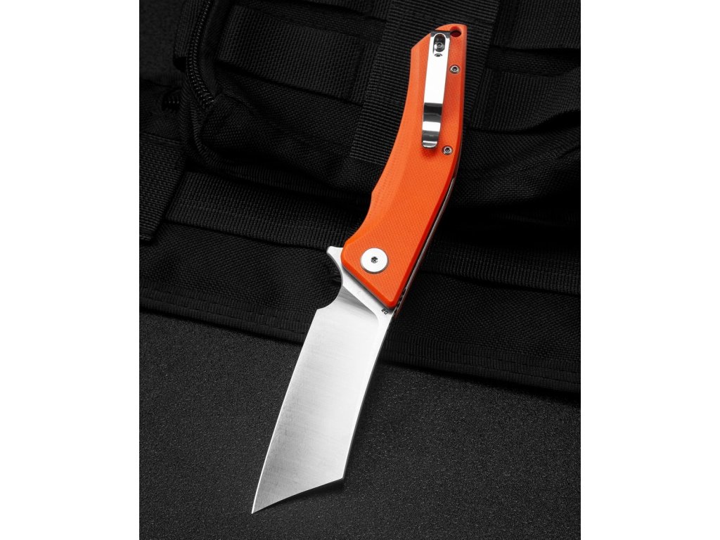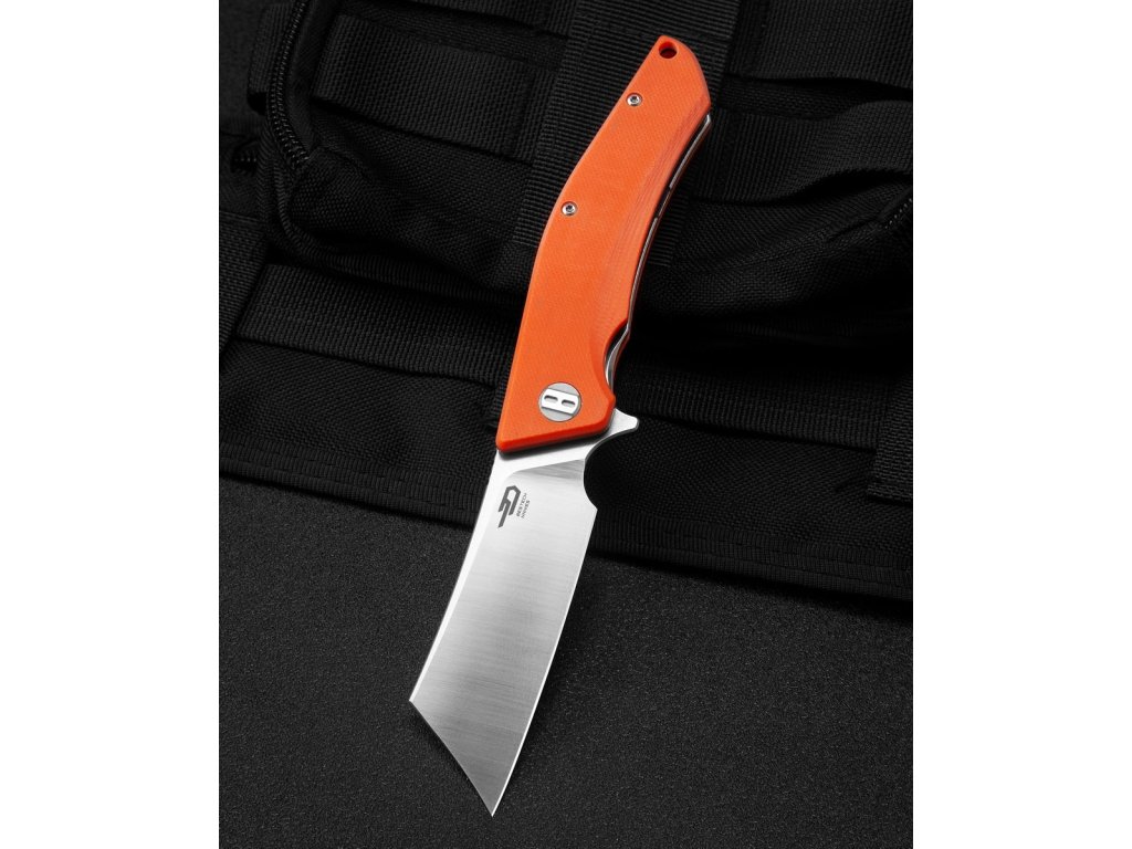 Bestech Cubis este un cuțit pliabil de dimensiuni medii cu o formă neobișnuită a lamei (tanto modificat), potrivit pentru utilizarea zilnică. Lama din oțel pentru unelte D2, tăiș tip flat grind, cu finisaj mat, are o lungime de 8 cm și este montată pe rulmenți ceramici, ceea ce face deschiderea cuțitului ușoară și lină. Mâner din G10 de culoare portocalie. Tip blocaj Liner Lock. Clemă din oțel pentru agățare. Deschidere cu o singură mână cu ajutorul unui știft pentru deschidere.