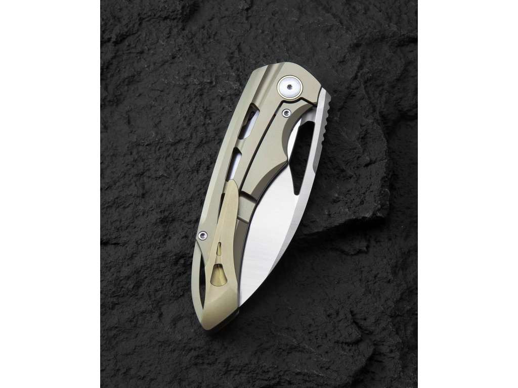 Bestech Fairchild este un cuțit pliabil premium EDC cu un design unic, care a fost creat în colaborare cu designerul Grzegorz Grabarski (cunoscut sub numele de Kombou). Are blocare a lamei tip Frame Lock, deschidere cu flipper și o lamă montată pe rulmenți ceramici. Lama drop point, lungă de 10 cm, cu finisaj stonewash este fabricată din oțel premium CPM S35VN cu duritate de până la 59-61 HRC. Lama are un tăiș flat grind. Mânerul și clema cuțitului sunt realizate din titan aurie (grad 5, Ti6Al4V).