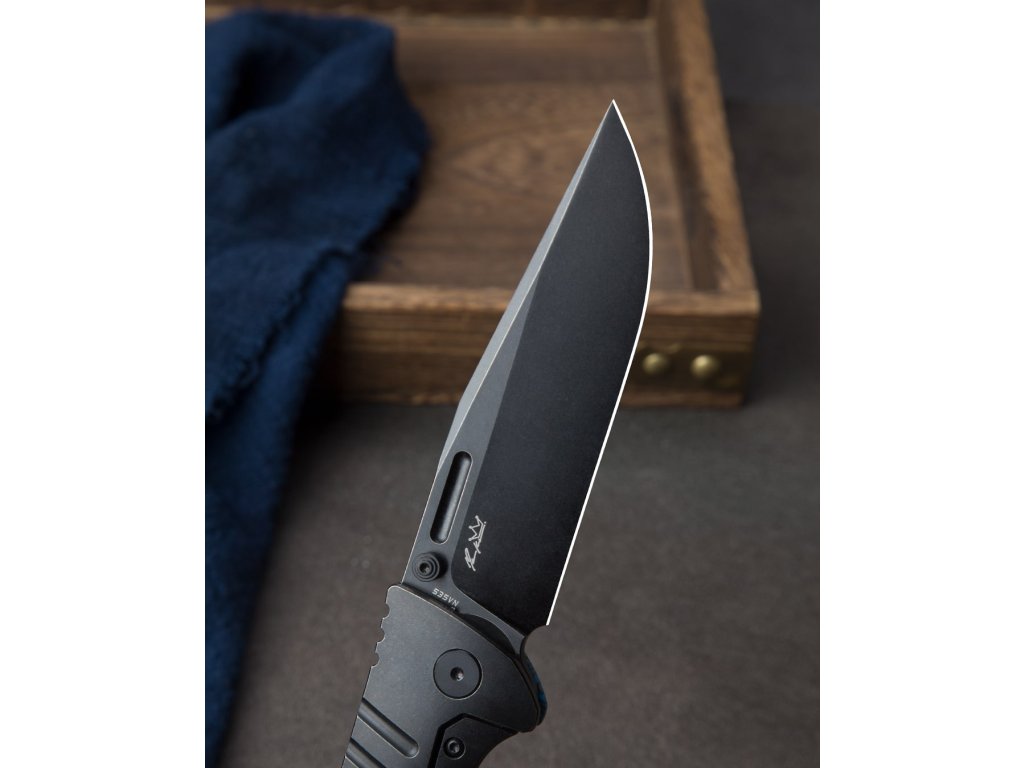 Bestech Keen II BT2301D este un cuțit pliabil exclusivist, realizat din materiale premium. Are o blocare tip Frame Lock. Lama este montată pe rulmenți ceramici. Lama este fabricată din oțel premium S35VN, în formă de clip point, cu o lungime de 10,6 cm și finisaj stonewash. Duritatea oțelului variază între 60 - 61 HRC. Mânerul negru-albastru, cu o prindere confortabilă, este fabricat din titan combinat cu G10. Cuțitul include o clemă pentru agățat. Cuțitul de buzunar Keen II va fi apreciat de toți colecționarii pasionați de piese unice.