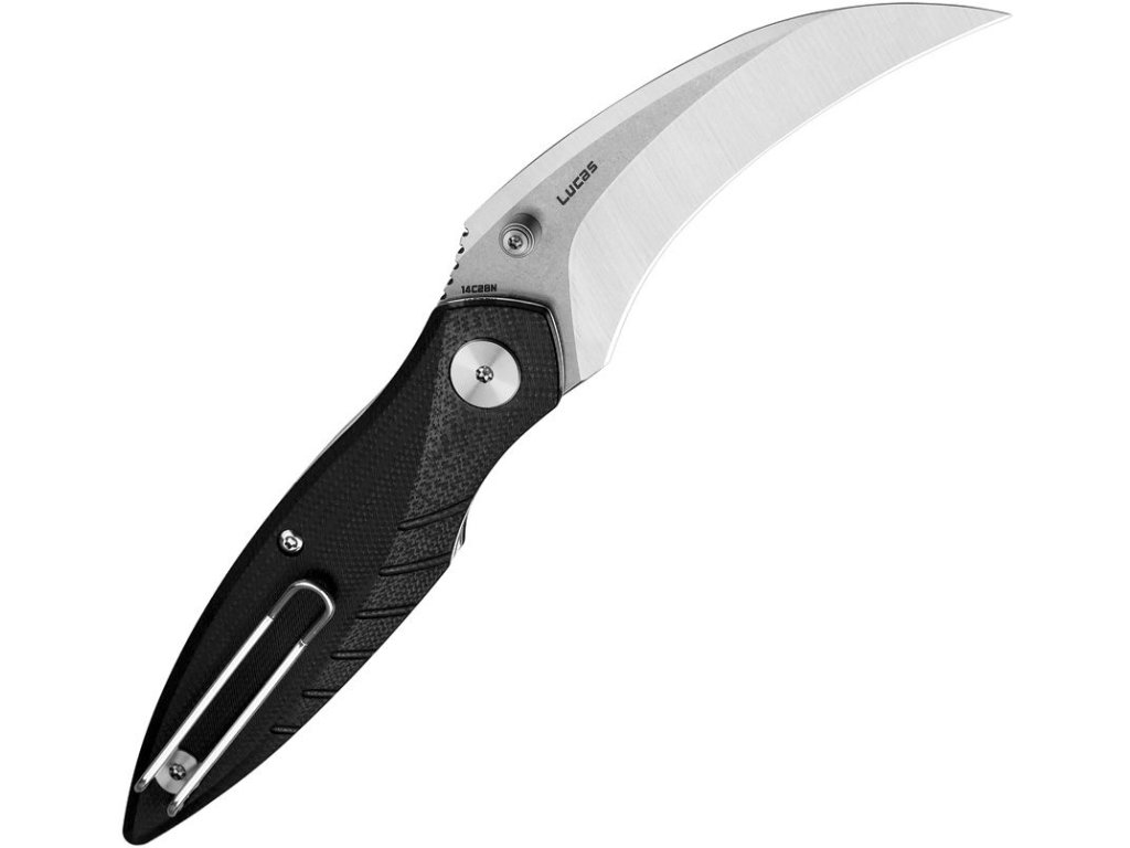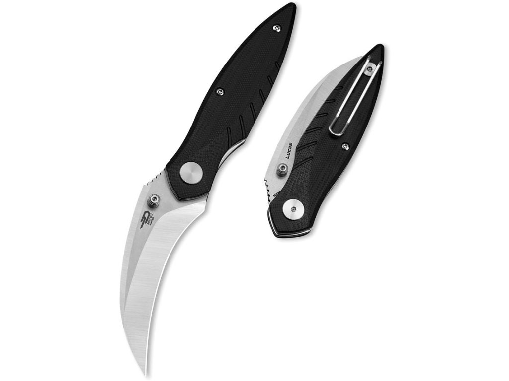 Cuțit de buzunar de mărime medie, conceput pentru utilizare zilnică. Lama este fabricată din oțel inoxidabil 14C28N cu tăiș flat grind, are o lungime de 7,4 cm și este montată pe rulmenți ceramici. Finisajul lamei este satinat și stonewash. Mânerul este fabricat din G10 negru cu textură pentru o prindere mai fermă. Cuțitul are popularul tip de blocare a lamei liner lock și clemă din oțel pentru agățat. Deschidere cu o singură mână cu un buton pentru degetul mare pe lamă. Modelul Bestech Mantidae este special forma sa curbată a lamei (Hawkbill) - excelează la tăiere, dar puteți folosi și vârful ascuțit pentru a străpunge materialele. Greutatea lamei este de numai 96 g.