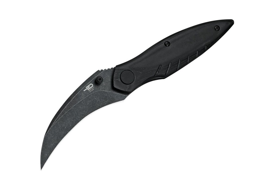 Cuțit de buzunar de mărime medie, conceput pentru utilizare zilnică. Lama este fabricată din oțel inoxidabil 14C28N cu tăiș flat grind, are o lungime de 7,4 cm și este montată pe rulmenți ceramici. Finisajul lamei este black stonewash. Mânerul este fabricat din micarta neagră cu textură pentru o prindere mai fermă. Cuțitul are popularul tip de blocare a lamei liner lock și clemă din oțel pentru agățat. Deschidere cu o singură mână cu un buton pentru degetul mare pe lamă. Modelul Bestech Mantidae este special forma sa curbată a lamei (Hawkbill) - excelează la tăiere, dar puteți folosi și vârful ascuțit pentru a străpunge materialele. Greutatea lamei este de numai 96 g.