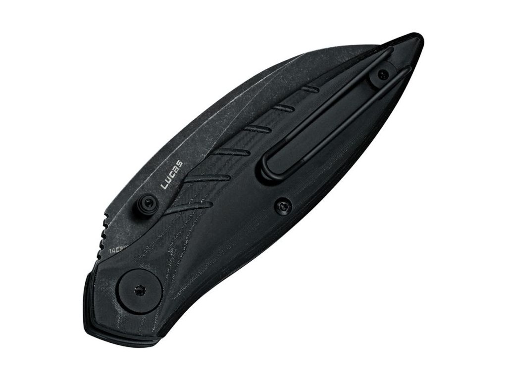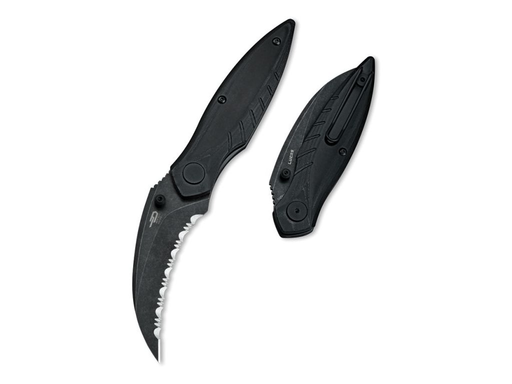Cuțit de buzunar de mărime medie, conceput pentru utilizare zilnică. Lama este fabricată din oțel inoxidabil 14C28N cu tăiș flat grind, are o lungime de 7,4 cm și este montată pe rulmenți ceramici. Finisajul lamei este black stonewash. Mânerul este fabricat din micarta neagră cu textură pentru o prindere mai fermă. Cuțitul are popularul tip de blocare a lamei liner lock și clemă din oțel pentru agățat. Deschidere cu o singură mână cu un buton pentru degetul mare pe lamă. Modelul Bestech Mantidae este special forma sa curbată a lamei (Hawkbill) - excelează la tăiere, dar puteți folosi și vârful ascuțit pentru a străpunge materialele. Greutatea lamei este de numai 96 g.