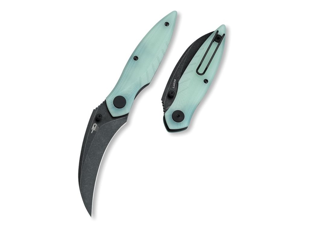 Cuțit de buzunar de mărime medie, conceput pentru utilizare zilnică. Lama este fabricată din oțel inoxidabil 14C28N cu tăiș flat grind, are o lungime de 7,4 cm și este montată pe rulmenți ceramici. Finisajul lamei este black stonewash. Mânerul este fabricat din G10 albastru cu textură pentru o prindere mai fermă. Cuțitul are popularul tip de blocare a lamei liner lock și clemă din oțel pentru agățat. Deschidere cu o singură mână cu un buton pentru degetul mare pe lamă. Modelul Bestech Mantidae este special forma sa curbată a lamei (Hawkbill) - excelează la tăiere, dar puteți folosi și vârful ascuțit pentru a străpunge materialele. Greutatea lamei este de numai 96 g.