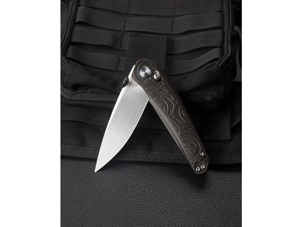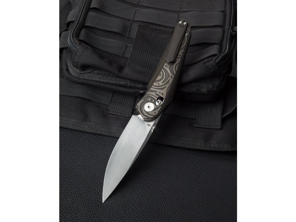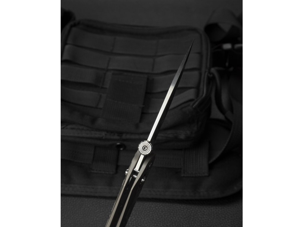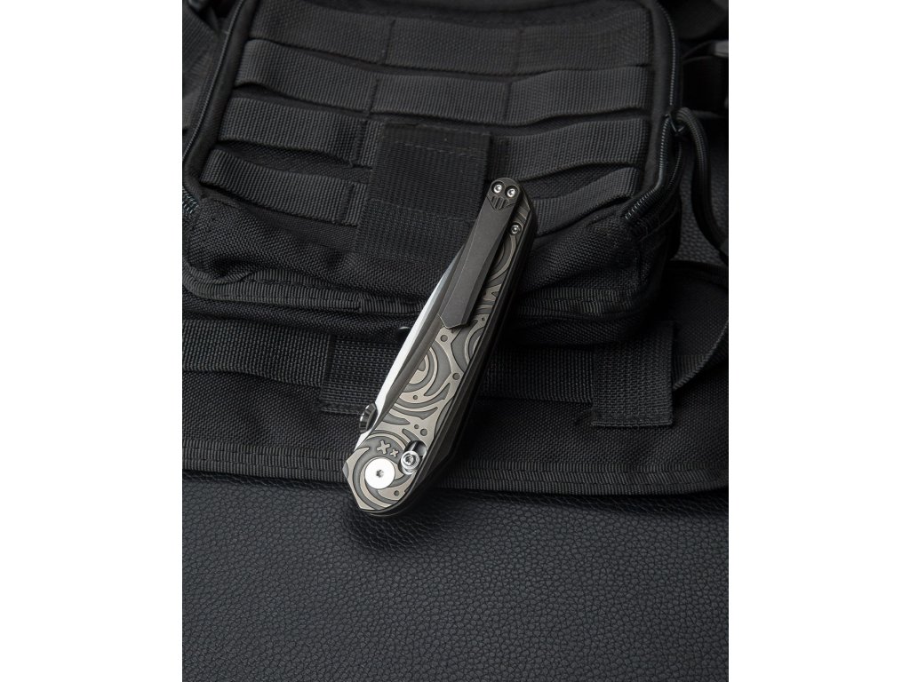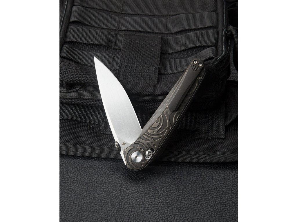 Bestech Mothus BT2206F este un cuțit pliabil cu un design unic realizat din materiale premium. .Lama este montată pe rulmenți ceramic, este fabricată din oțel premium M390, are formă drop point, o lungime de 8,8 cm și un finisaj satinat. Duritatea oțelului variază între 59 - 61 HRC. Mânerul și clema pentru agățat sunt realizate din titan de culoare neagră.