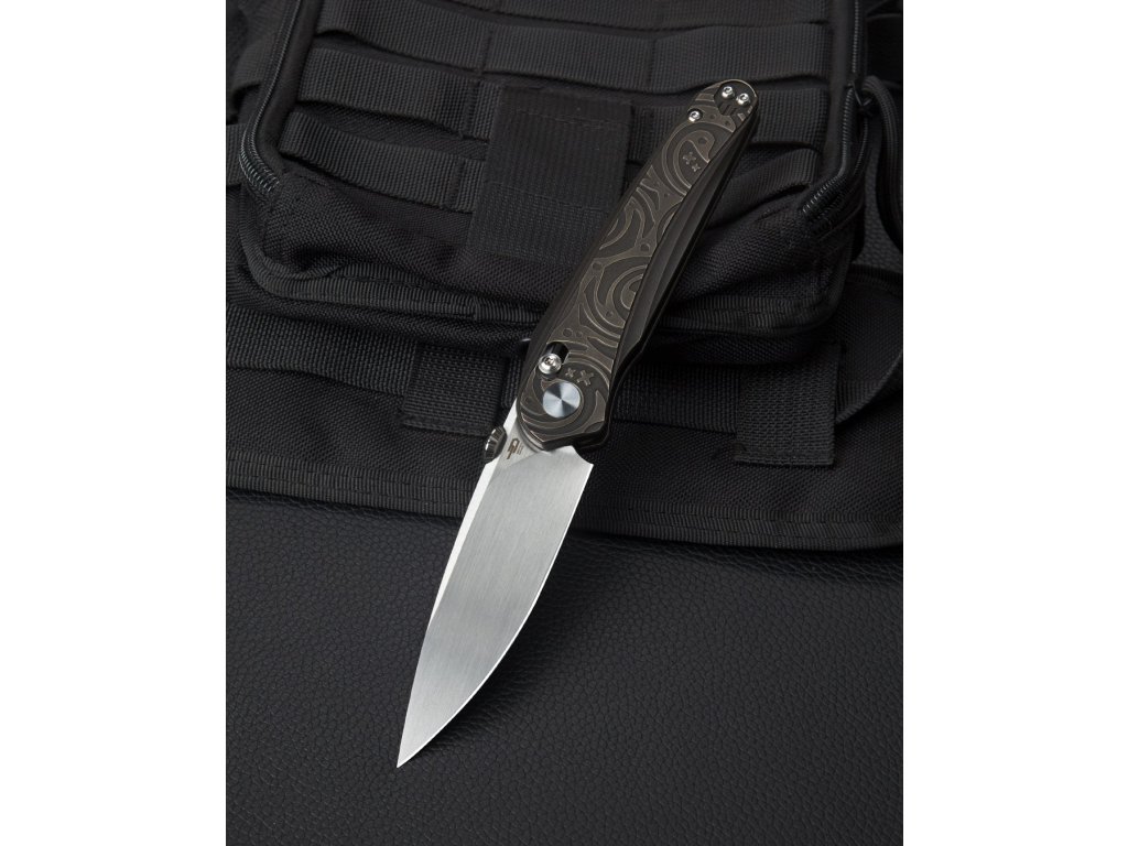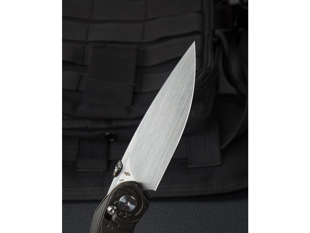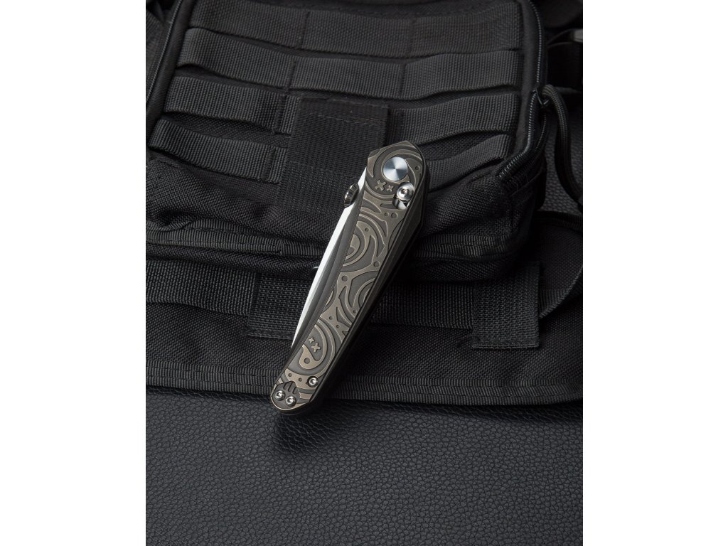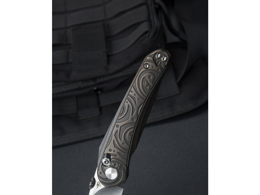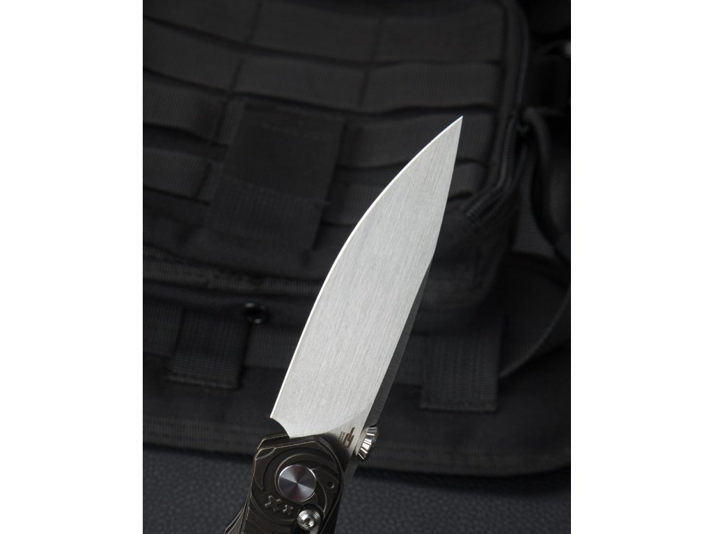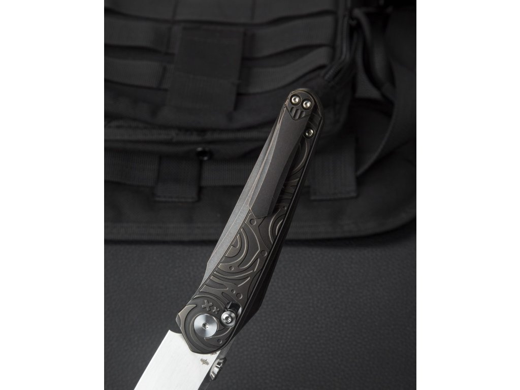 Bestech Mothus BT2206F este un cuțit pliabil cu un design unic realizat din materiale premium. .Lama este montată pe rulmenți ceramic, este fabricată din oțel premium M390, are formă drop point, o lungime de 8,8 cm și un finisaj satinat. Duritatea oțelului variază între 59 - 61 HRC. Mânerul și clema pentru agățat sunt realizate din titan de culoare neagră.