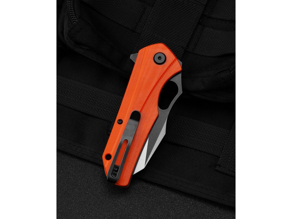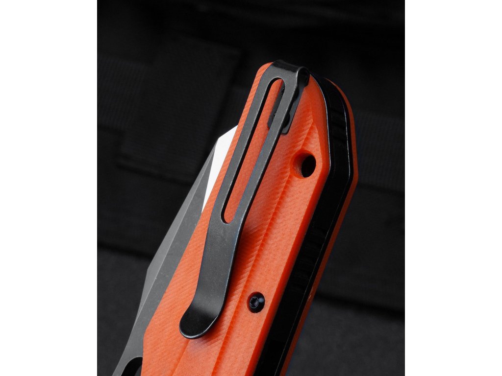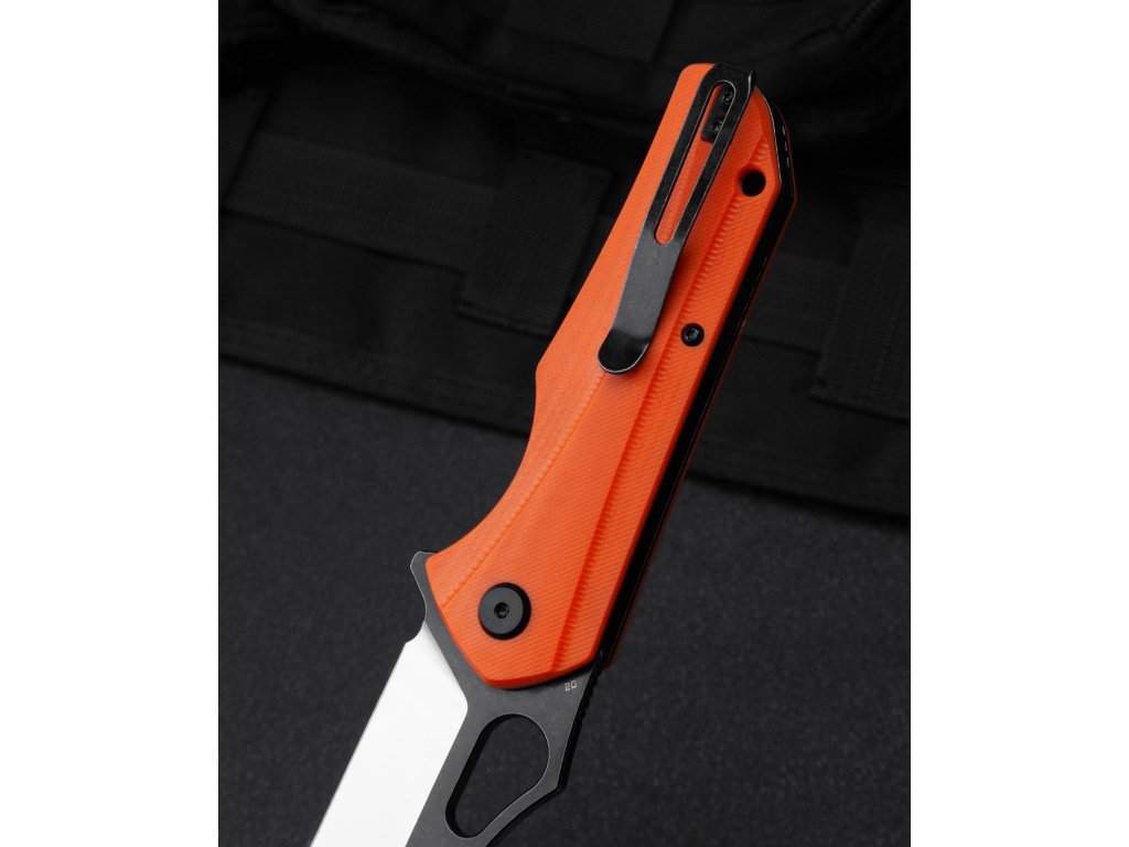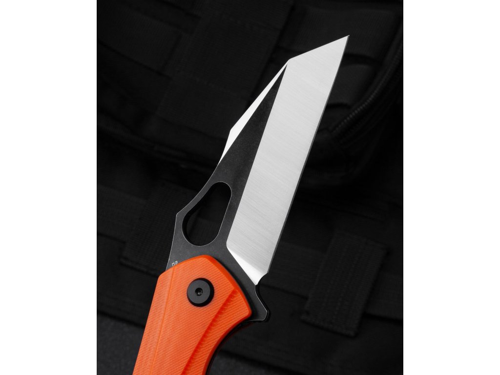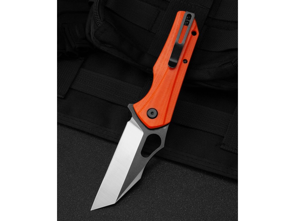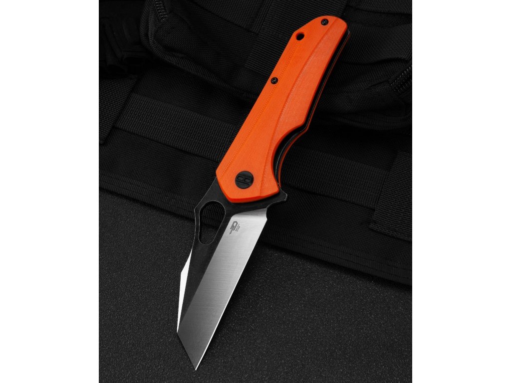 Bestech Operator este un cuțit pliabil masiv cu un design original. Lama cu formă wharncliffe, din oțel pentru unelte D2, cu tăiș flat grind și finisaj mat are o lungime de 9 cm și este montată pe rulmenți ceramici. Mâner din G10 cu finisaj portocaliu. Blocaj tip Liner Lock. Clema din oțel pentru agățare permite purtarea ascunsă (deep carry). Clema este pentru dreptaci. Deschidere prin intermediul unei găuri mari de pe lamă sau prin flipper.