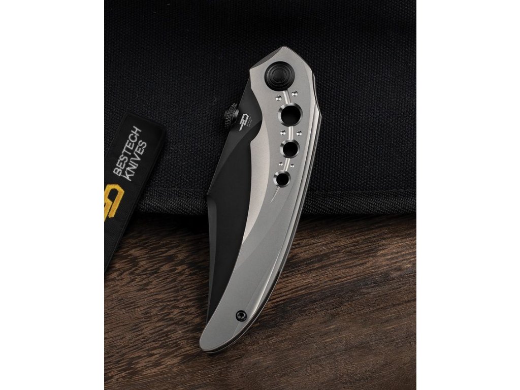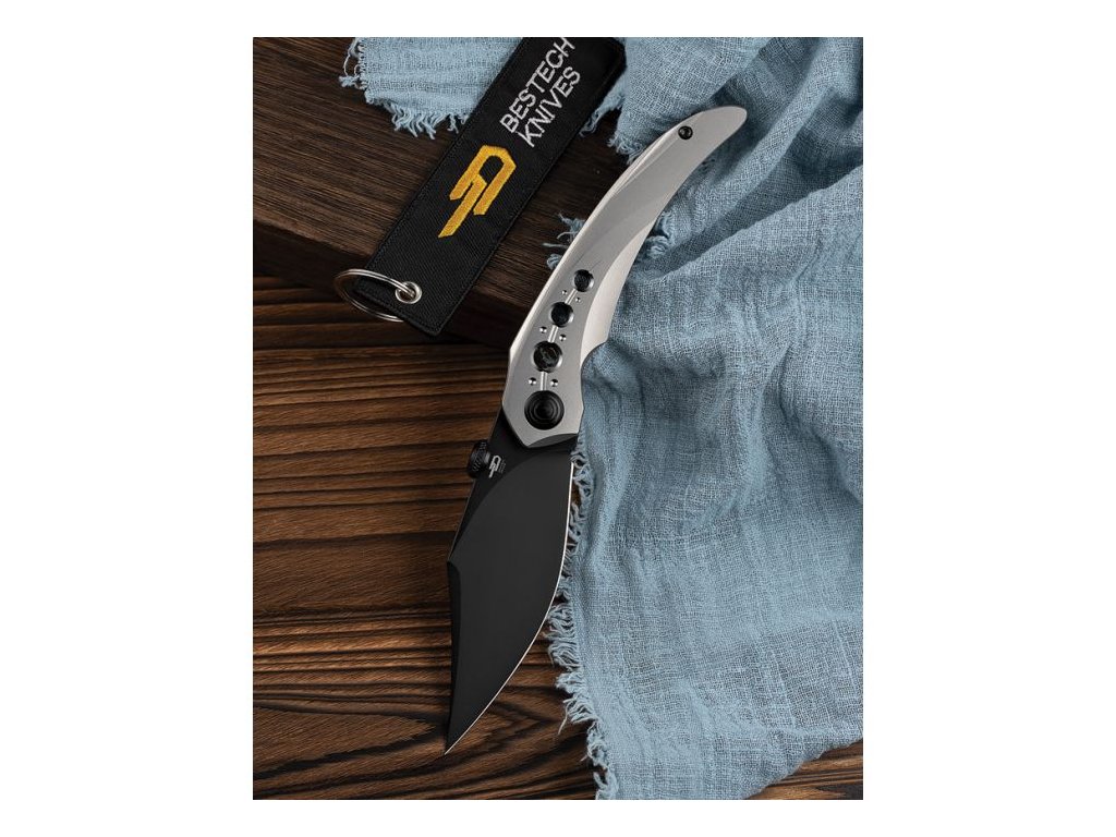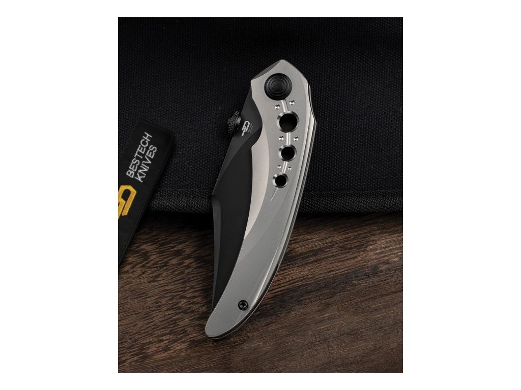 Deschidere cu o singură mână prin intermediul unui disc pe lamă. Modelul Bestech Razon are de o clemă din titan pentru agățare. Greutatea lamei este de 116 g.