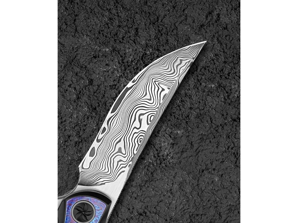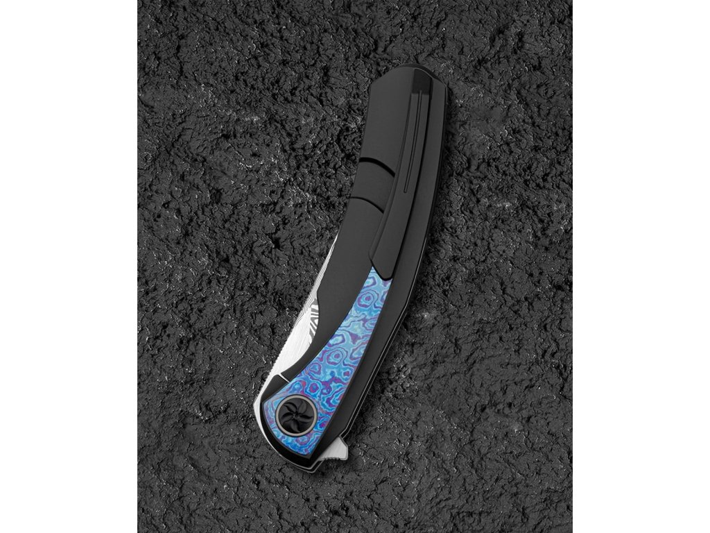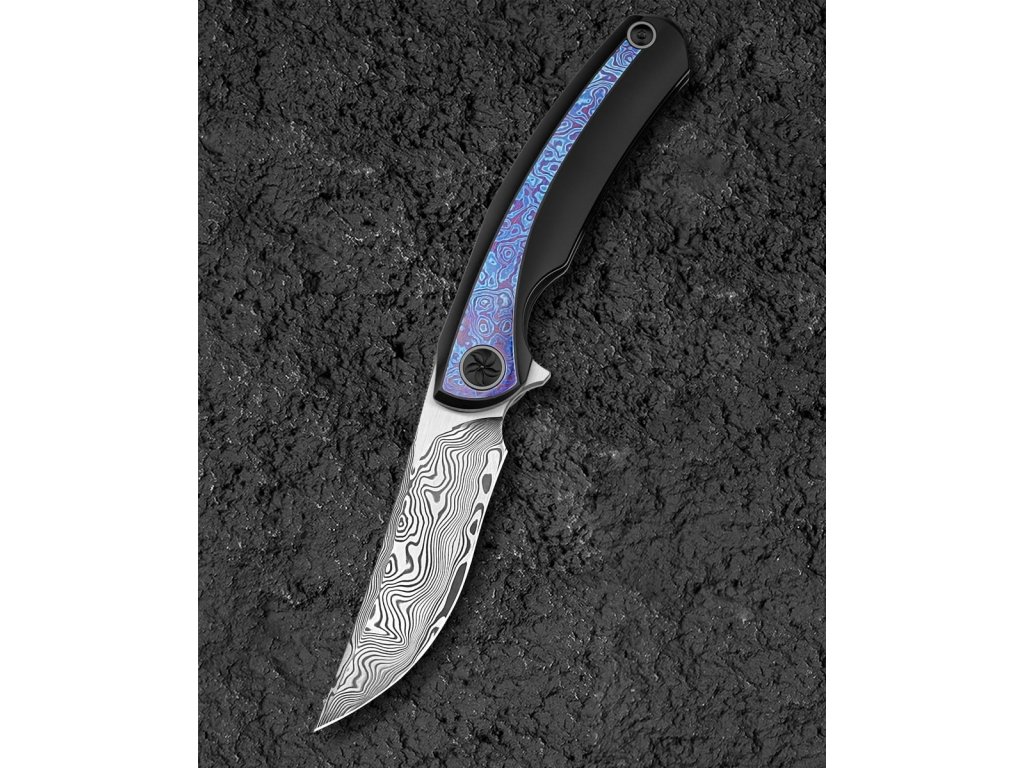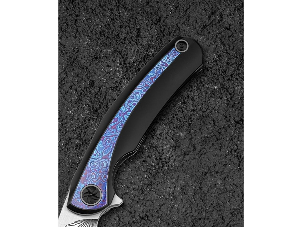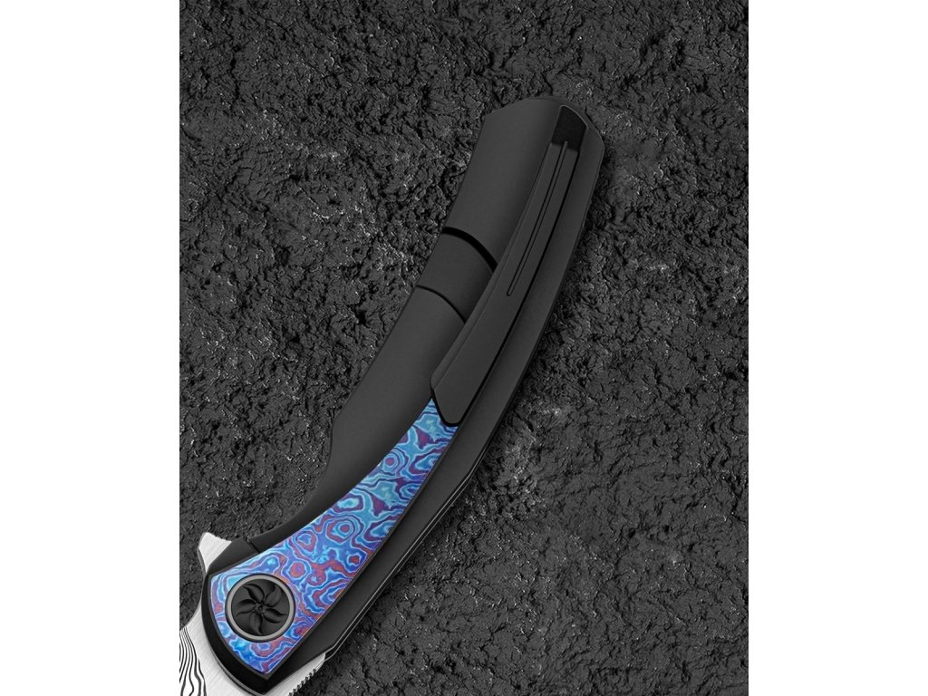 Cuțitul pliabil exclusivist Bestech Sambac Frame Lock Black BT2402F realizat din materiale de cea mai bună calitate și cu o ascuțime excelentă. Lama este fabricată din oțel de damasc excelent, cu o duritate ridicată de 60 HRC. Lama are o lungime de 9,2 cm. Datorită rulmenților ceramici, lamă se deschide extrem de ușor. Are o blocare tip frame lock. Mânerul este complet realizat din titan negru anodizat, iar pe partea de mijloc este realizată din timascus,care nu face decât să accentueze eleganța cuțitului. Procesul de anodizare (anodizare) asigură un tratament chimico-termic al suprafeței. Aveți nevoie doar de un deget pentru a-l deschide, ceea ce face ca deschiderea să fie foarte convenabilă și rapidă. Modelul Bestech Sambac este completat de o clemă din titan pentru agățare. Greutatea este de 140 g.