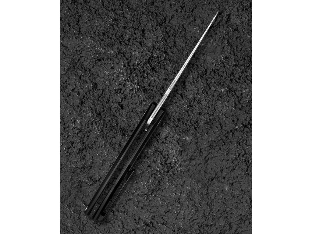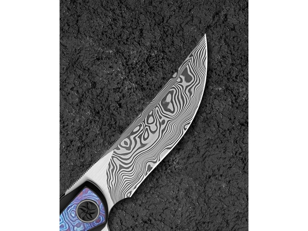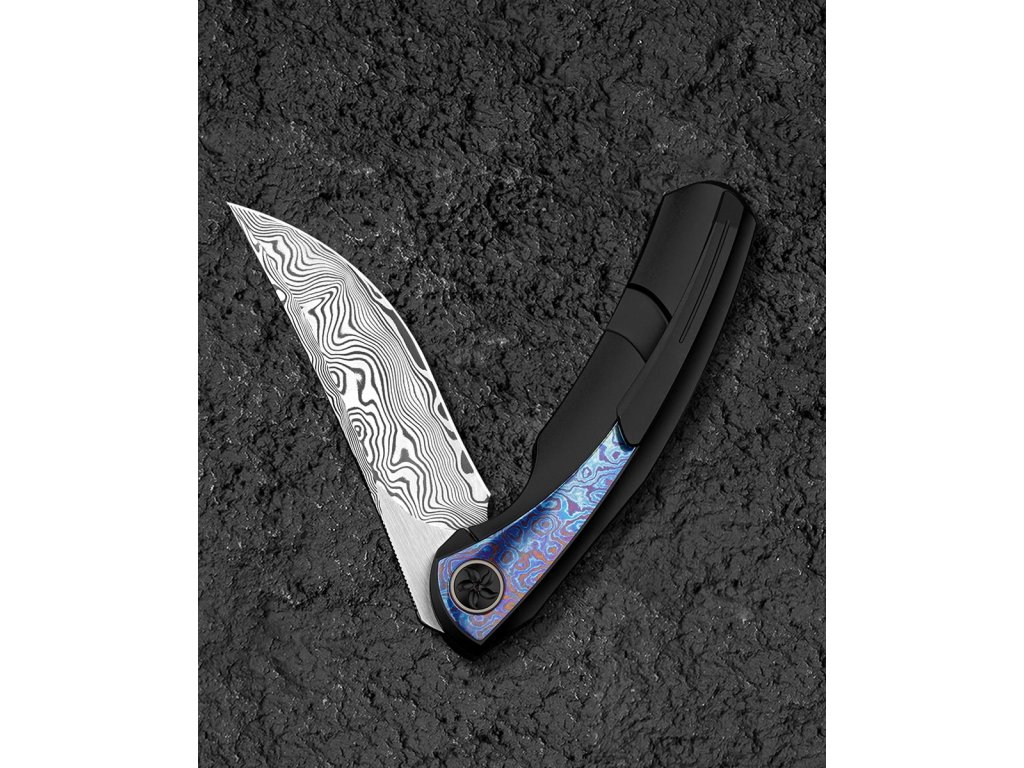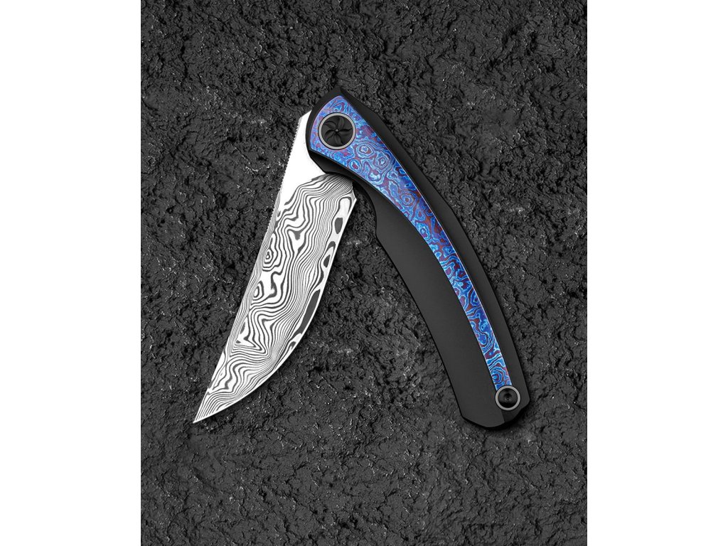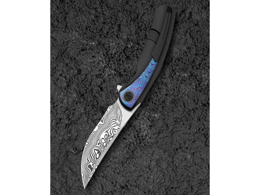Cuțitul pliabil exclusivist Bestech Sambac Frame Lock Black BT2402F realizat din materiale de cea mai bună calitate și cu o ascuțime excelentă. Lama este fabricată din oțel de damasc excelent, cu o duritate ridicată de 60 HRC. Lama are o lungime de 9,2 cm. Datorită rulmenților ceramici, lamă se deschide extrem de ușor. Are o blocare tip frame lock. Mânerul este complet realizat din titan negru anodizat, iar pe partea de mijloc este realizată din timascus,care nu face decât să accentueze eleganța cuțitului. Procesul de anodizare (anodizare) asigură un tratament chimico-termic al suprafeței. Aveți nevoie doar de un deget pentru a-l deschide, ceea ce face ca deschiderea să fie foarte convenabilă și rapidă. Modelul Bestech Sambac este completat de o clemă din titan pentru agățare. Greutatea este de 140 g.
