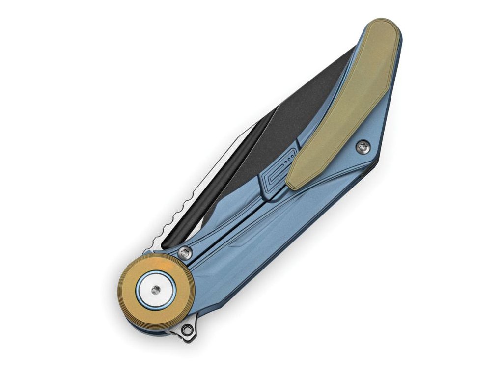Cuțit premium Bestech Seraph Frame Lock Black Bronze BT2403D fabricat din materiale premium. Lama clip point lungă de 9,3 cm este fabricată din oțel M390 premium, care este considerat unul dintre cele mai bune oțeluri pentru cuțite în prezent. Lama are un finisaj combinat, satinat și stonewash negru, și atinge o duritate extremă de 59-61 HRC. Rulmenții ceramici asigură o funcționare lină și ușoară a lamei, așa cum ne-am obișnuit cu cuțitele Bestech. Mâner din titan (grad 5, Ti6Al4V) de culoare albastră. Clema și backspacer-ul sunt, de asemenea, din titan. Deschidere cu o singură mână prin intermediul unui disc pe lamă. Blocare a lamei tip frame lock. Greutatea lamei este de 119,6 g.