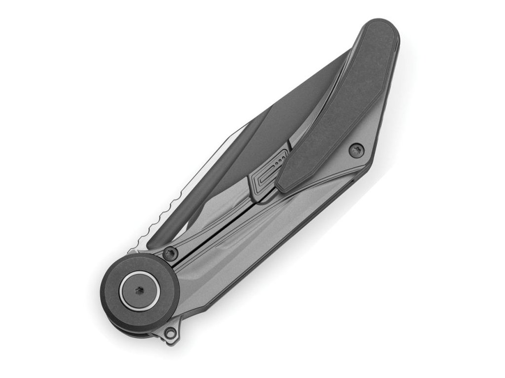Cuțit premium Bestech Seraph Frame Lock Black Bronze BT2403A fabricat din materiale premium. Lama clip point lungă de 9,3 cm este fabricată din oțel M390 premium, care este considerat unul dintre cele mai bune oțeluri pentru cuțite în prezent. Lama are un finisaj combinat, satinat și dark bead blast) și atinge o duritate extremă de 60-62 HRC. Rulmenții ceramici asigură o funcționare lină și ușoară a lamei, așa cum ne-am obișnuit cu cuțitele Bestech. Mâner din titan (grad 5, Ti6Al4V) de culoare gri. Clema și backspacer-ul sunt, de asemenea, din titan. Deschidere cu o singură mână prin intermediul unui disc pe lamă. Blocare a lamei tip frame lock. Greutatea lamei este de 119,6 g.