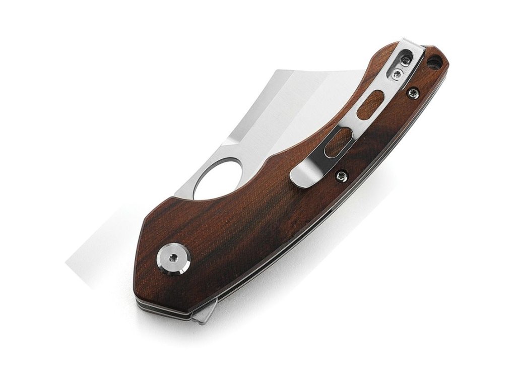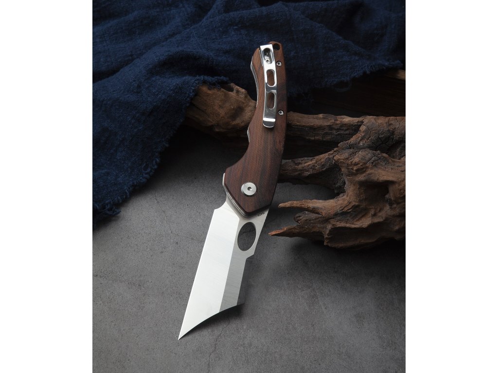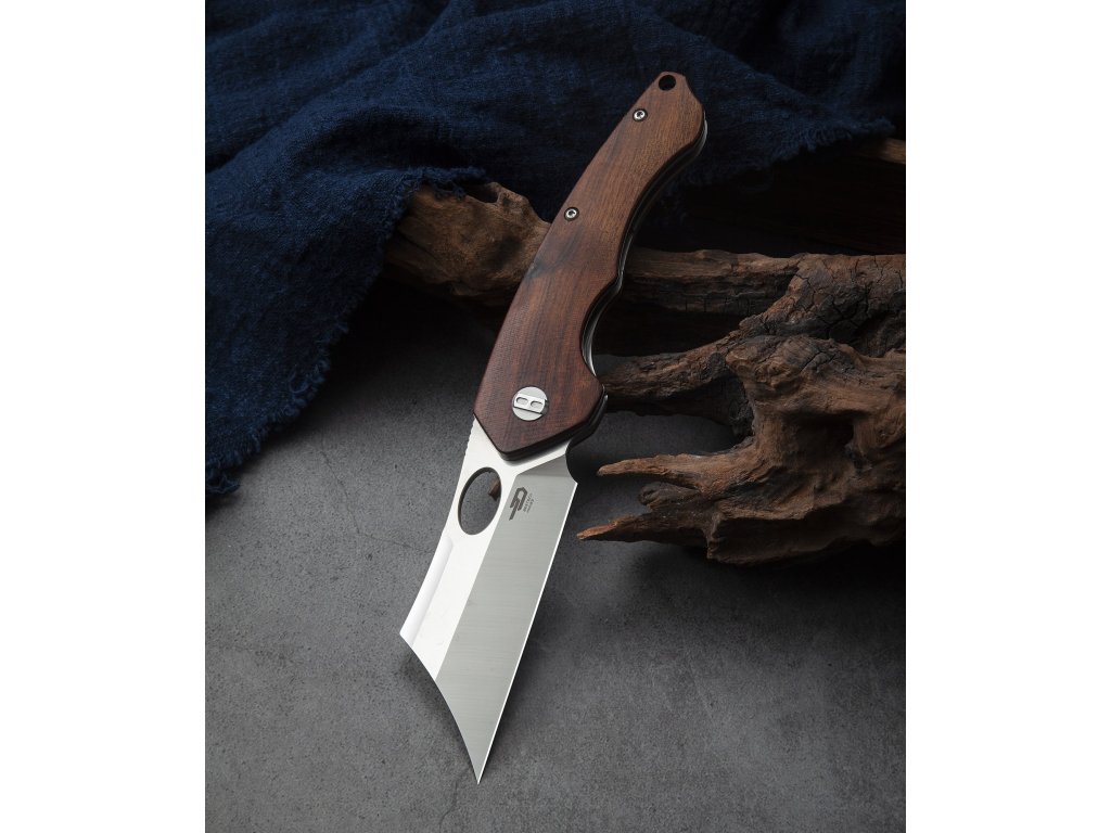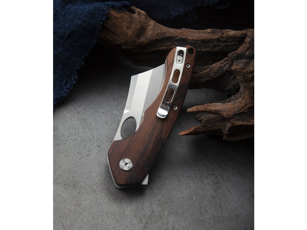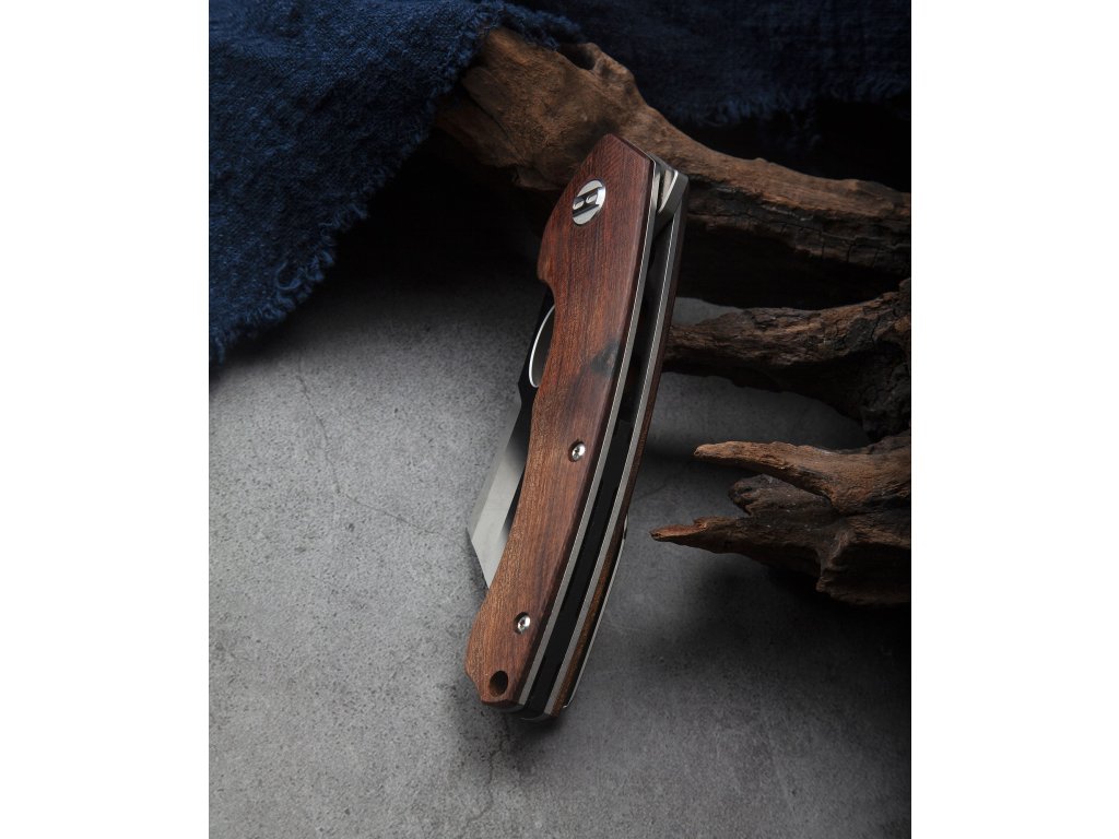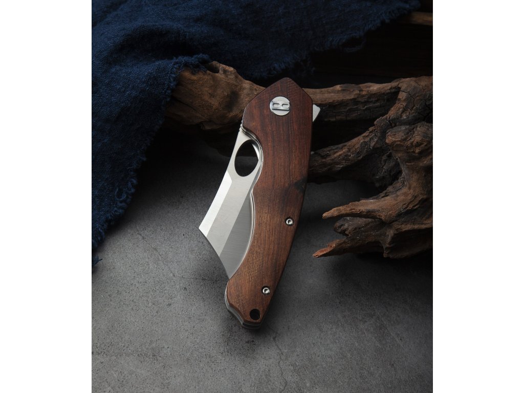 Bestech Skirmish BL06A este un cuțit EDC de calitate cu o formă neobișnuită a lamei (wharncliffe). Lățimea lamei îl face o piesă cu adevărat originală. Blocare a lamei tip Liner Lock. Lama de lungime 8,2 cm este fabricată din oțel durabil 154CM cu finisaj satinat și are un tăiș flat grind. Lama este montată pe rulmenți ceramici, datorită cărora puteți deschide cuțitul ușor. Mânerul este fabricat din lemn de esență tare pentru o prindere confortabilă. Puteți deschide cuțitul foarte ușor cu un singur deget (mecanism thumb stud).