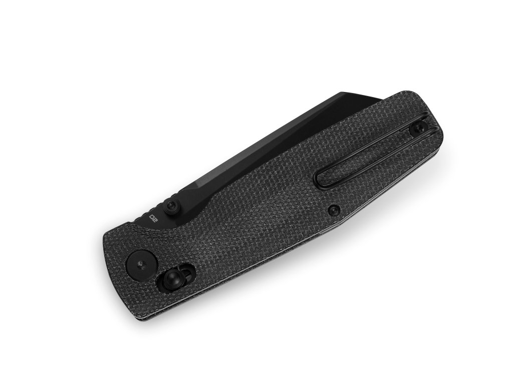 Cuțit de buzunar de mărime medie, conceput pentru utilizare zilnică. Lama este fabricată din oțel D2, cu tăiș flat grind, are o lungime de 8,9 cm și este montată pe rulmenți ceramici. Finisaj stonewash negru. Mâner din Micarta neagră cu textură pentru o prindere fermă. Cuțitul este echipat cu un o blocare a lamei de tip bar lock și o clemă din oțel pentru agățare. Deschidere cu o singură mână cu un știft pentru degetul mare pe lamă.