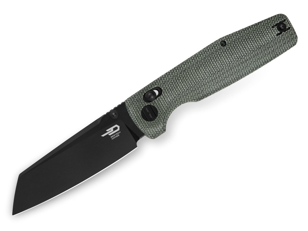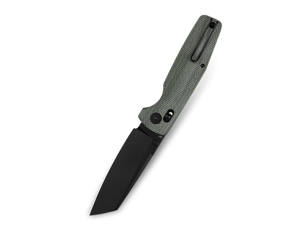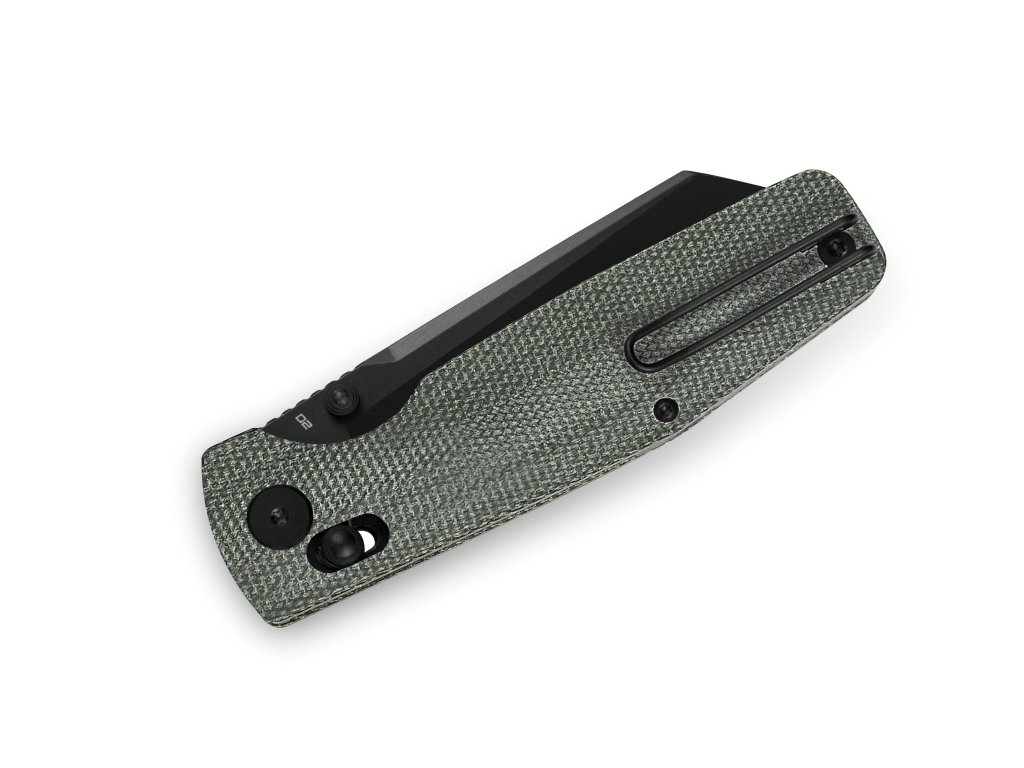 Cuțit de buzunar de mărime medie, conceput pentru utilizare zilnică. Lama este fabricată din oțel D2, cu tăiș flat grind, are o lungime de 8,9 cm și este montată pe rulmenți ceramici. Finisaj stonewash negru. Mâner din Micarta verde cu textură pentru o prindere fermă. Cuțitul este echipat cu un o blocare a lamei de tip bar lock și o clemă din oțel pentru agățare. Deschidere cu o singură mână cu un știft pentru degetul mare pe lamă.