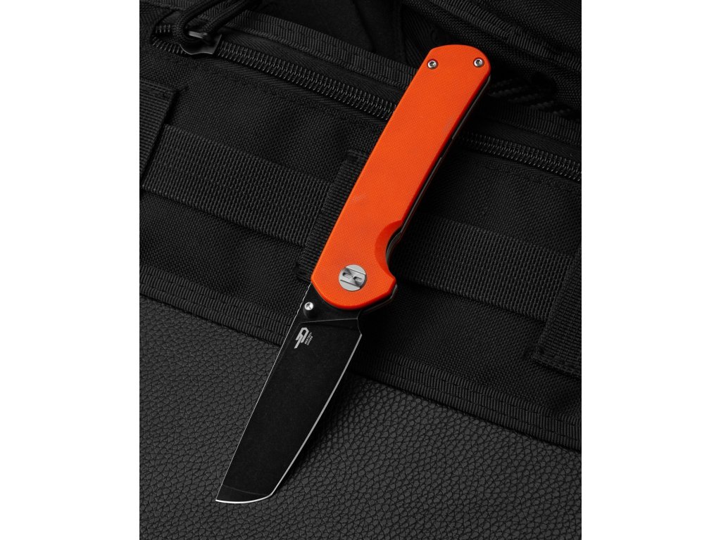 Bestech Sledgehammer este un cuțit pliabil de dimensiuni medii cu o formă neobișnuită a lamei (tanto modificat), potrivit pentru utilizare zilnică. Lama din oțel pentru unelte D2, cu tăiș tip flat grind și finisaj negru stonewash are o lungime de 7,6 cm și este montată pe rulmenți ceramici, ceea ce face ca deschiderea cuțitului să fie ușoară și lină. Mâner din G10 de culoare portocalie. Blocare tip Liner Lock. Clemă din oțel pentru agățare. Deschidere cu o singură mână cu un știft pentru deschidere.