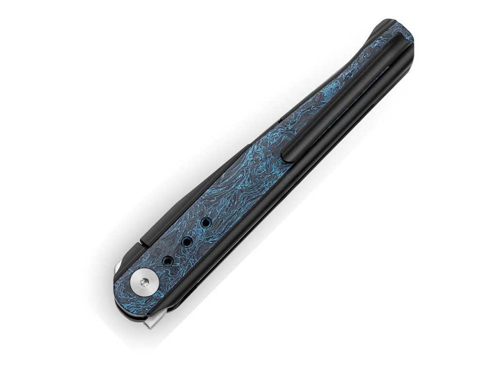 Cuțitul premium Bestech Spear Phisher Frame Lock Black BT2405C fabricat din materiale excelente. Lama drop point lungă de 8,8 cm este fabricată din oțel M390 premium, care este considerat unul dintre cele mai bune oțeluri pentru cuțite. Finisajul suprafeței lamei este satinat și oțelul are o duritate extremă de 60-62 HRC. Rulmenții ceramici asigură o mișcare lină și ușoară a lamei, așa cum suntem obișnuiți cu cuțitele Bestech. Mânerul este fabricat din titan,, iar pe partea de mijloc a fost aplicat un strat albastru din fibră de carbon, care nu face decât să sporească eleganța cuțitului. Clema și backspacer-ul sunt, de asemenea, din titan. Blocare a lamei tip frame lock.. Greutatea edusă a cuțitului de doar 70 g.