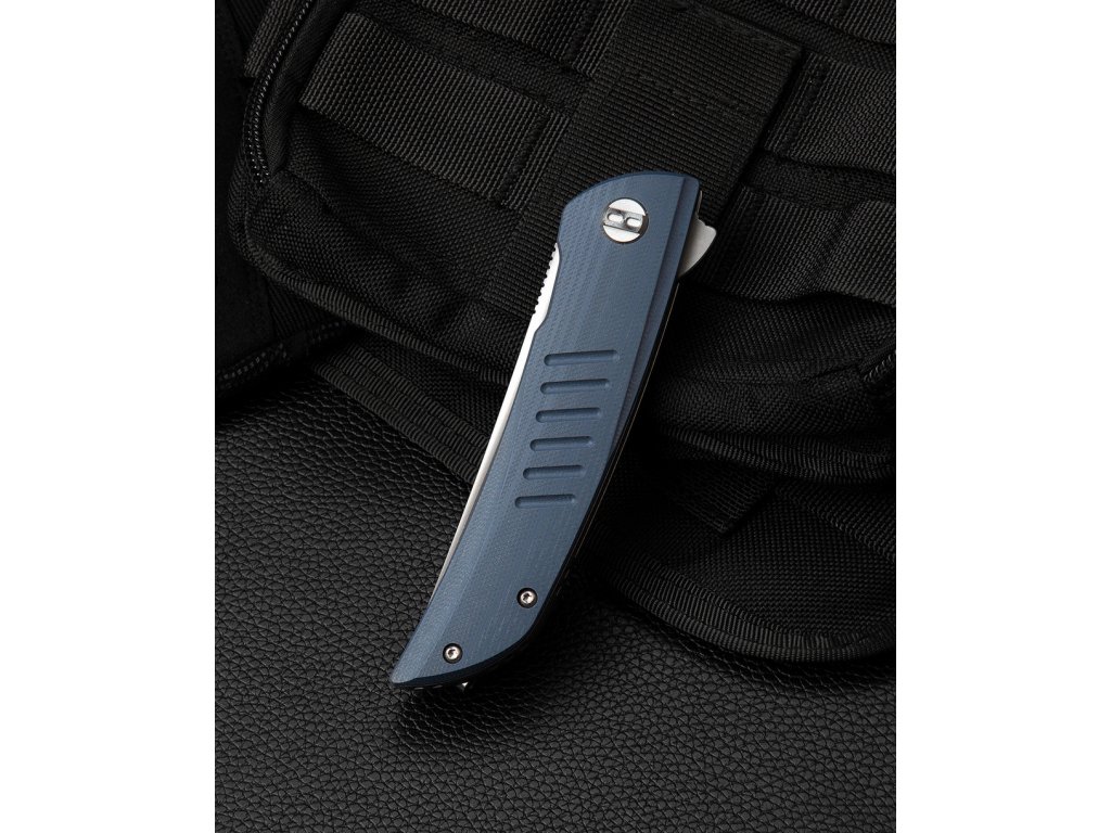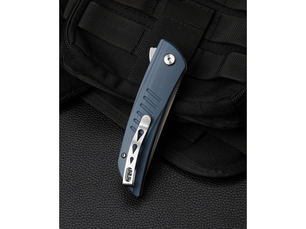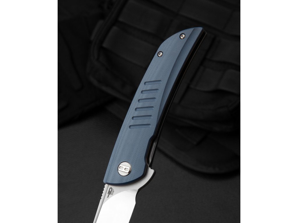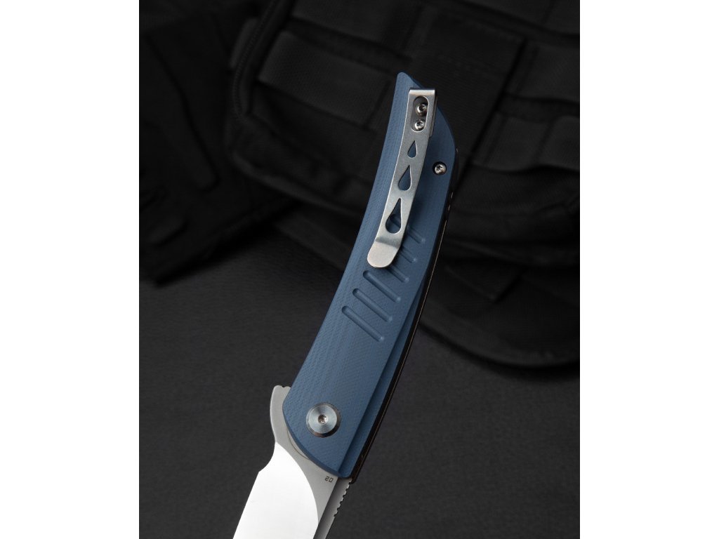 Bestech Swift BG30 este un cuțit pliabil potrivit pentru utilizarea zilnică. Are un mâner subțire și o lamă robustă cu proprietăți excelente de tăiere. Lama din oțel pentru unelte D2, cu tăiș flat grind are o lungime de 9 cm și un finisaj mat. Mâner din micarta gri albastru. Blocare tip Liner Lock. Clemă din oțel pentru agățare. Cuțitul poate fi deschis cu ușurință cu ajutorul flipperului. Datorită rulmenților ceramici utilizați, deschiderea cuțitului este foarte ușoară și lină.