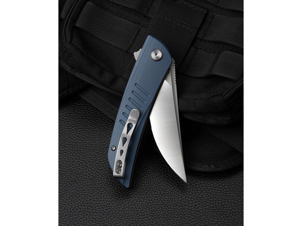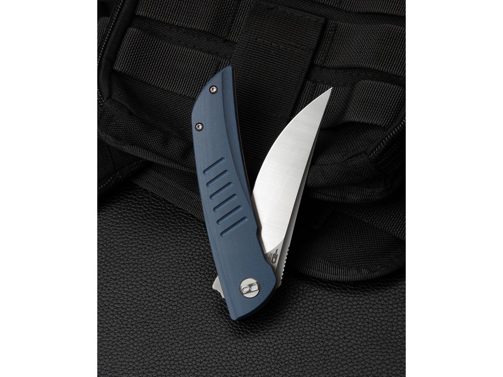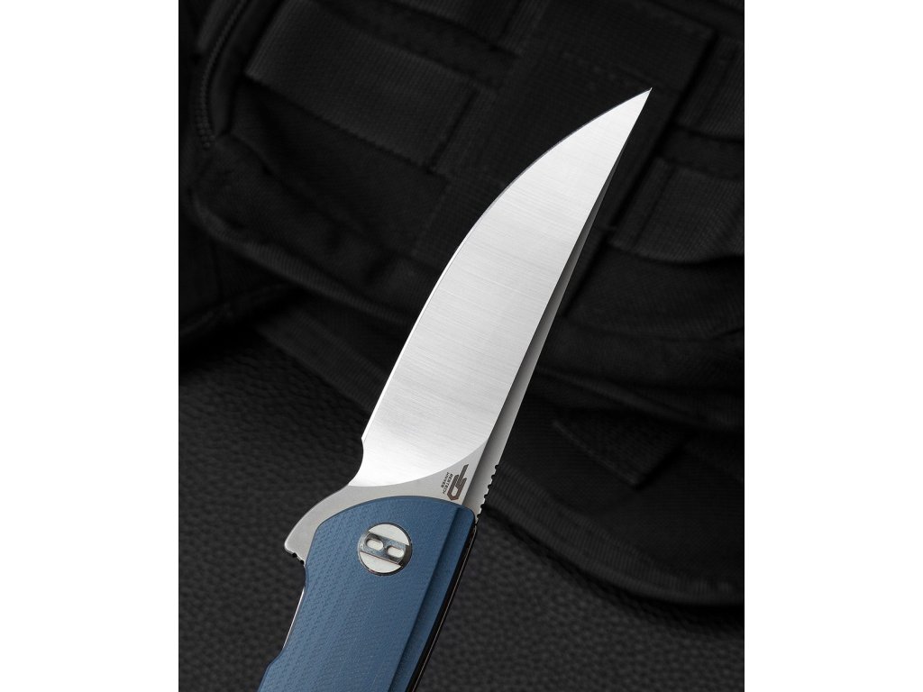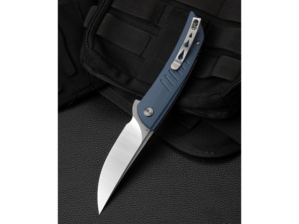 Bestech Swift BG30 este un cuțit pliabil potrivit pentru utilizarea zilnică. Are un mâner subțire și o lamă robustă cu proprietăți excelente de tăiere. Lama din oțel pentru unelte D2, cu tăiș flat grind are o lungime de 9 cm și un finisaj mat. Mâner din micarta gri albastru. Blocare tip Liner Lock. Clemă din oțel pentru agățare. Cuțitul poate fi deschis cu ușurință cu ajutorul flipperului. Datorită rulmenților ceramici utilizați, deschiderea cuțitului este foarte ușoară și lină.