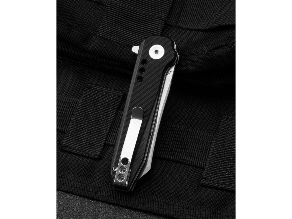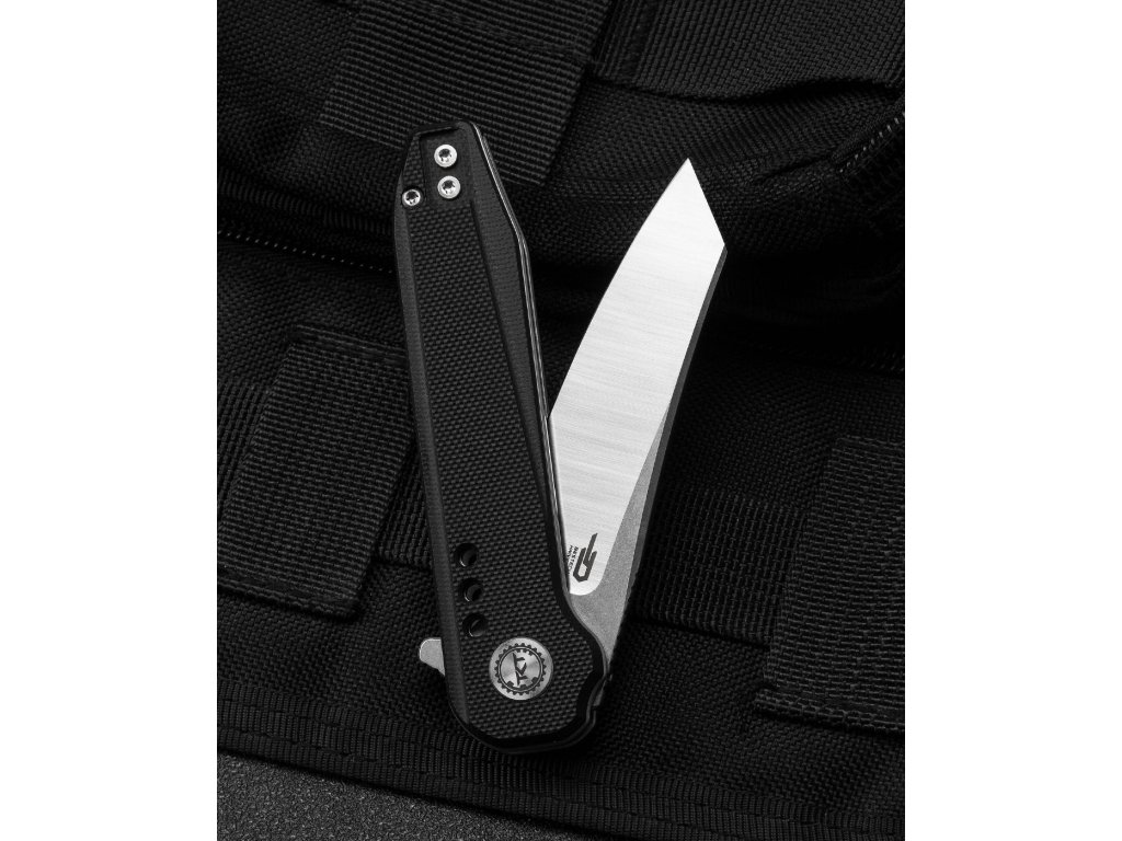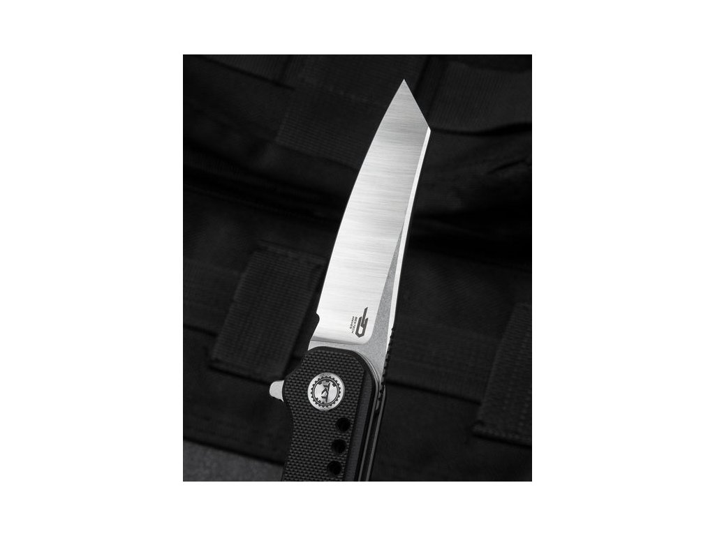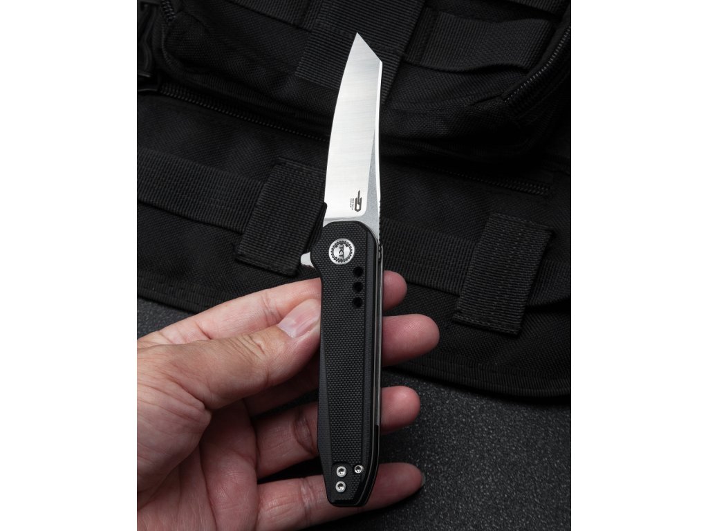 Bestech Syntax este un cuțit pliabil elegant de dimensiuni medii, potrivit pentru utilizare zilnică. Lama din oțel inoxidabil Sandvik 14C28N, cu tăiș flat grind are lungimea de 7,2 cm și este montată pe rulmenți ceramici. Mânerul este fabricat din G10 de culoare neagră. Blocare tip Liner Lock. Clemă din oțel pentru agățare. Deschidere cu o singură mână cu ajutorul unui flipper.
