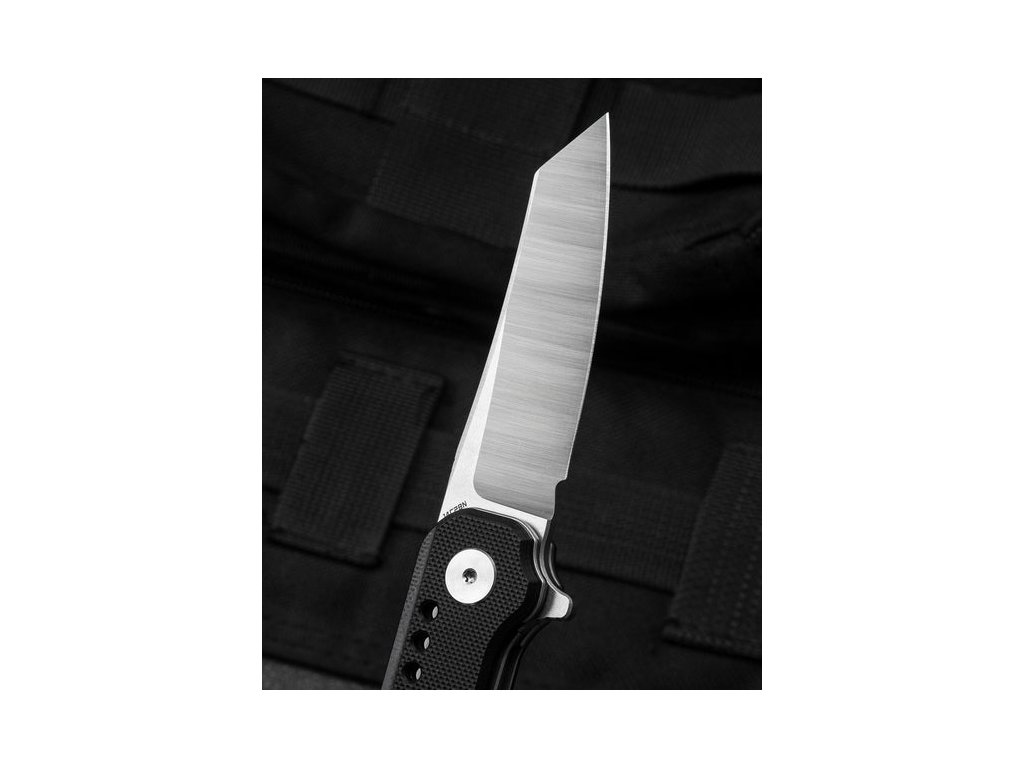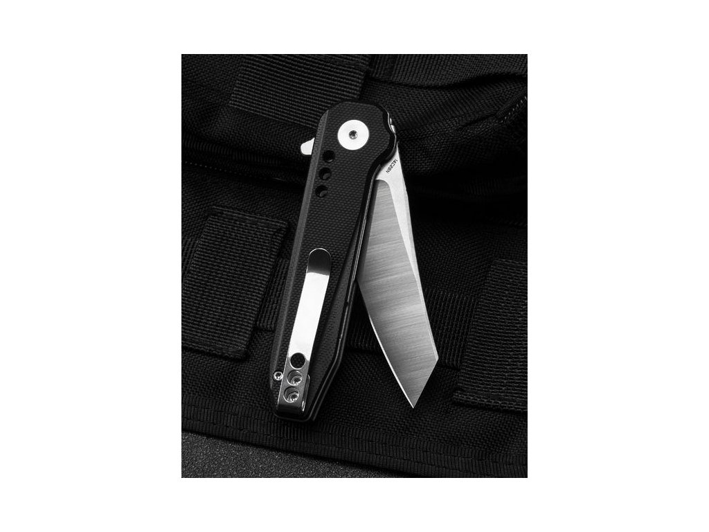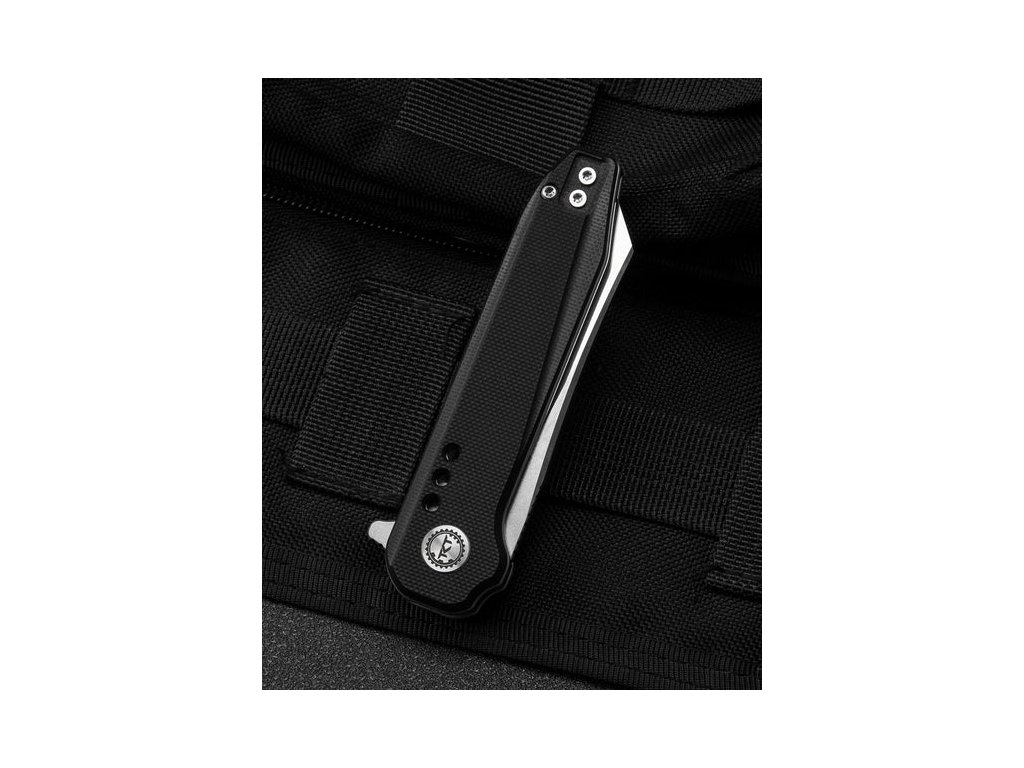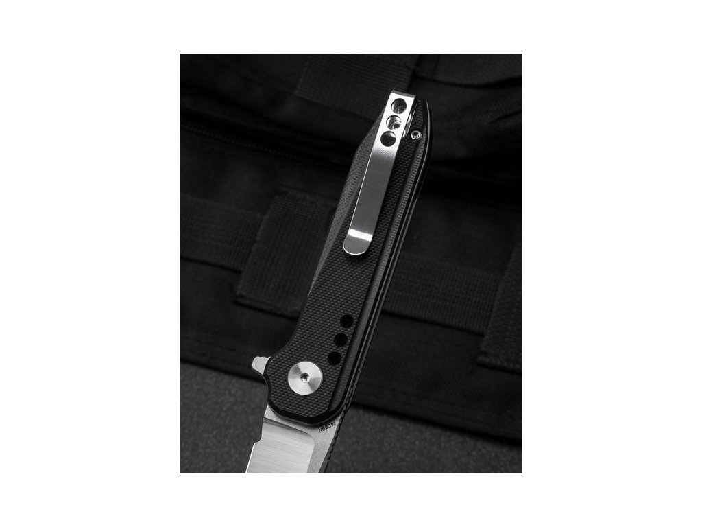 Bestech Syntax este un cuțit pliabil elegant de dimensiuni medii, potrivit pentru utilizare zilnică. Lama din oțel inoxidabil Sandvik 14C28N, cu tăiș flat grind are lungimea de 7,2 cm și este montată pe rulmenți ceramici. Mânerul este fabricat din G10 de culoare neagră. Blocare tip Liner Lock. Clemă din oțel pentru agățare. Deschidere cu o singură mână cu ajutorul unui flipper.