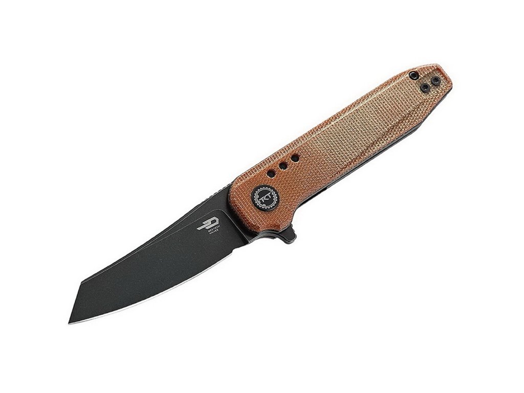 Bestech Syntax este un cuțit pliabil elegant de dimensiuni medii, potrivit pentru utilizare zilnică. Lama din oțel inoxidabil Sandvik 14C28N, cu tăiș flat grind are lungimea de 7,2 cm și este montată pe rulmenți ceramici. Mânerul este fabricat din micarta. Blocare tip Liner Lock. Clemă din oțel pentru agățare. Deschidere cu o singură mână cu ajutorul unui flipper.