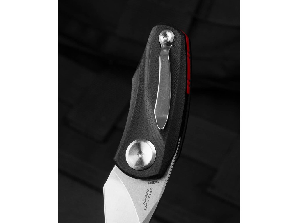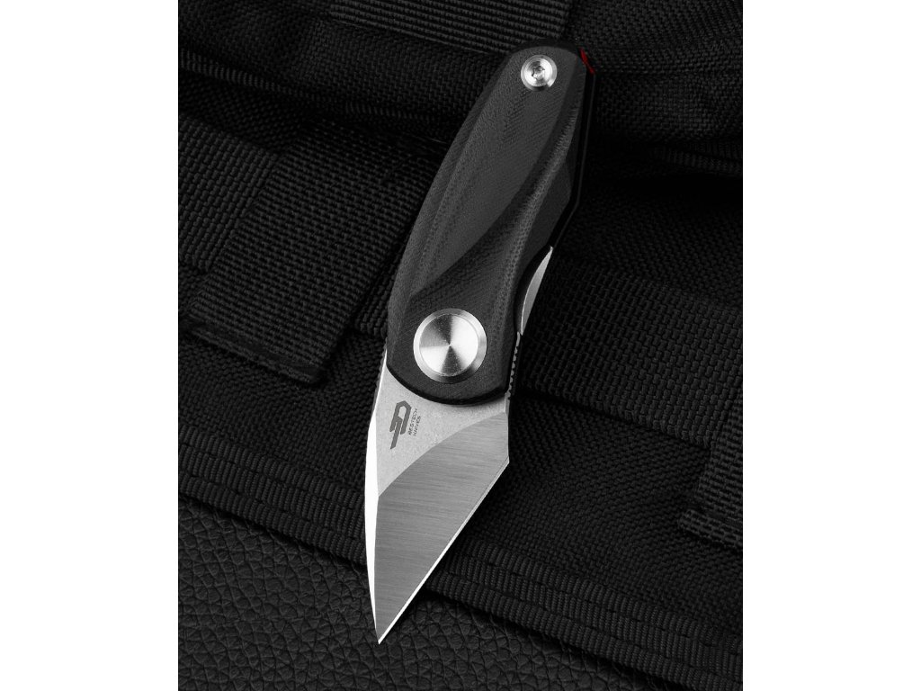 Bestech Tulip este un cuțit pliabil mic și elegant, potrivit pentru purtarea zilnică. Lama din oțel inoxidabil Sandvik 14C28N, cu tăiș tip flat grind are o lungime de 4 cm și este montată pe rulmenți ceramici. Mâner din G10 de culoare neagră. Blocare tip Liner Lock. Clemă din oțel pentru agățare. Deschidere cu o singură mână cu ajutorul flipperului frontal.