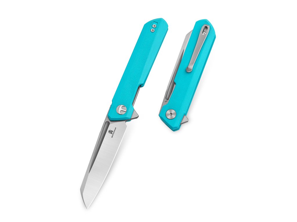 Bestechman Dundee Blue BMK09B este un cuțit EDC de la producătorul renumit Bestech. Cuțitul de buzunar este ideal pentru utilizare zilnică și ]l puteți lua cu dvs. oriunde. Oțelul D2 a fost folosit pentru fabricarea lamei de lungime 8,8 cm, lamă având o formă sheepfoot. Mânerul G10 de culoare albastru deschis asigură o prindere confortabilă. Finisajul stonewash utilizat elimină reflexiile nedorite și eventual ascunde zgârieturile minore. Cuțitul pliabil este echipat cu o blocare Liner Lock și o clemă pentru agățat. Degetul mare este tot ce aveți nevoie pentru a-l deschide, ceea ce face deschiderea convenabilă și rapidă (mecanism flipper).