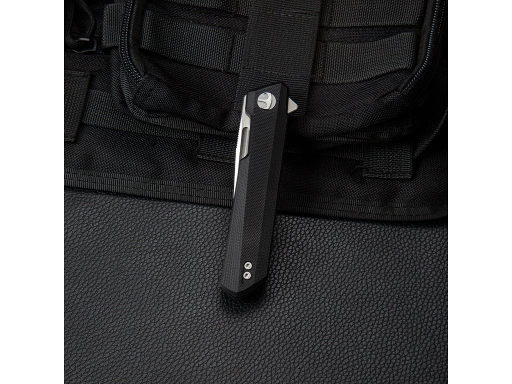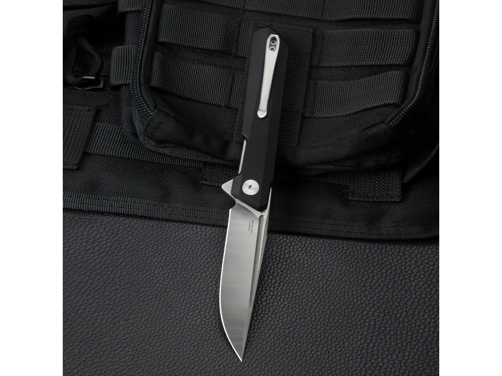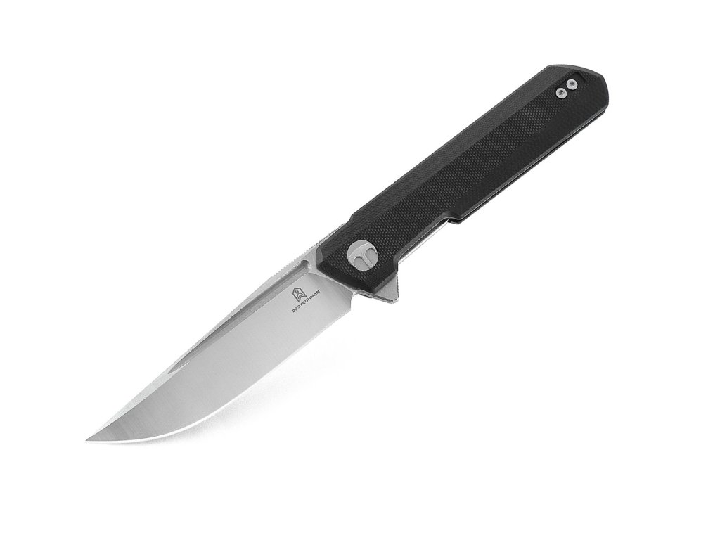 Bestechman Dundee BMK01A este un cuțit EDC de la producătorul renumit Bestech. Cuțitul de buzunar este ideal pentru utilizare zilnică și îl puteți lua cu dvs. oriunde mergeți. Lama, de lungime 8,5 cm, este realizată din oțel D2. Mânerul realizat din G10 de culoarea neagră tradițională asigură o prindere confortabilă. Finisajul stonewash utilizat elimină reflexiile nedorite și eventual ascunde zgărieturile minore. Cuțitul pliabil are o blocare tip Liner Lock și o clemă pentru agățare. Degetul mare este tot ce aveți nevoie pentru a-l deschide, ceea ce face deschiderea convenabilă și rapidă (mecanism flipper).
