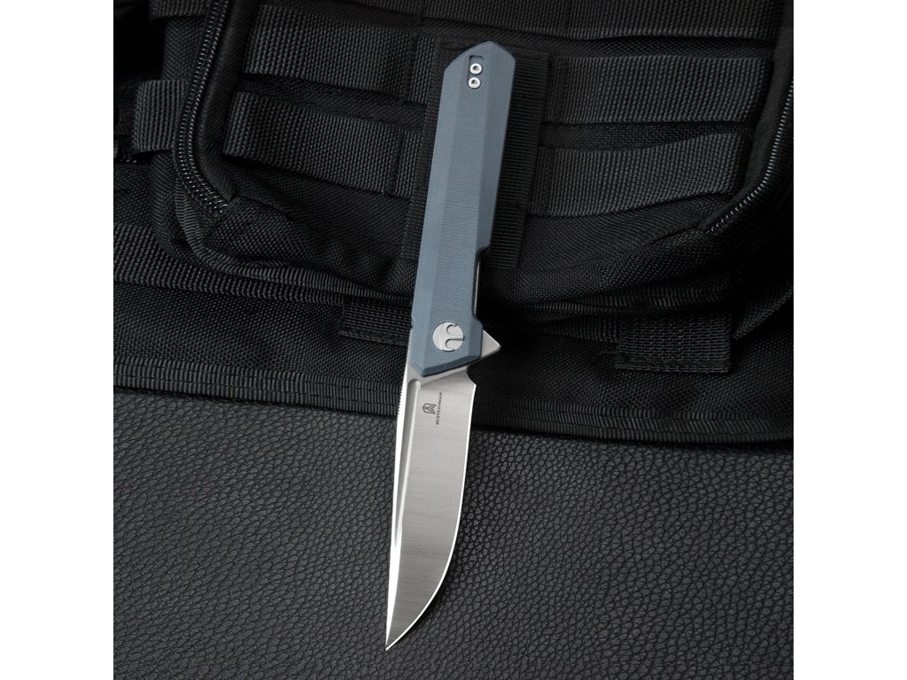 Bestechman Dundee BMK01C este un cuțit EDC de la producătorul renumit Bestech. Cuțitul de buzunar este ideal pentru utilizare zilnică și îl puteți lua cu dvs. oriunde mergeți. Lama, de lungime 8,5 cm, este realizată din oțel D2. Mânerul realizat din G10 de culoarea gri asigură o prindere confortabilă. Finisajul stonewash utilizat elimină reflexiile nedorite și eventual ascunde zgărieturile minore. Cuțitul pliabil are o blocare tip Liner Lock și o clemă pentru agățare. Degetul mare este tot ce aveți nevoie pentru a-l deschide, ceea ce face deschiderea convenabilă și rapidă (mecanism flipper).