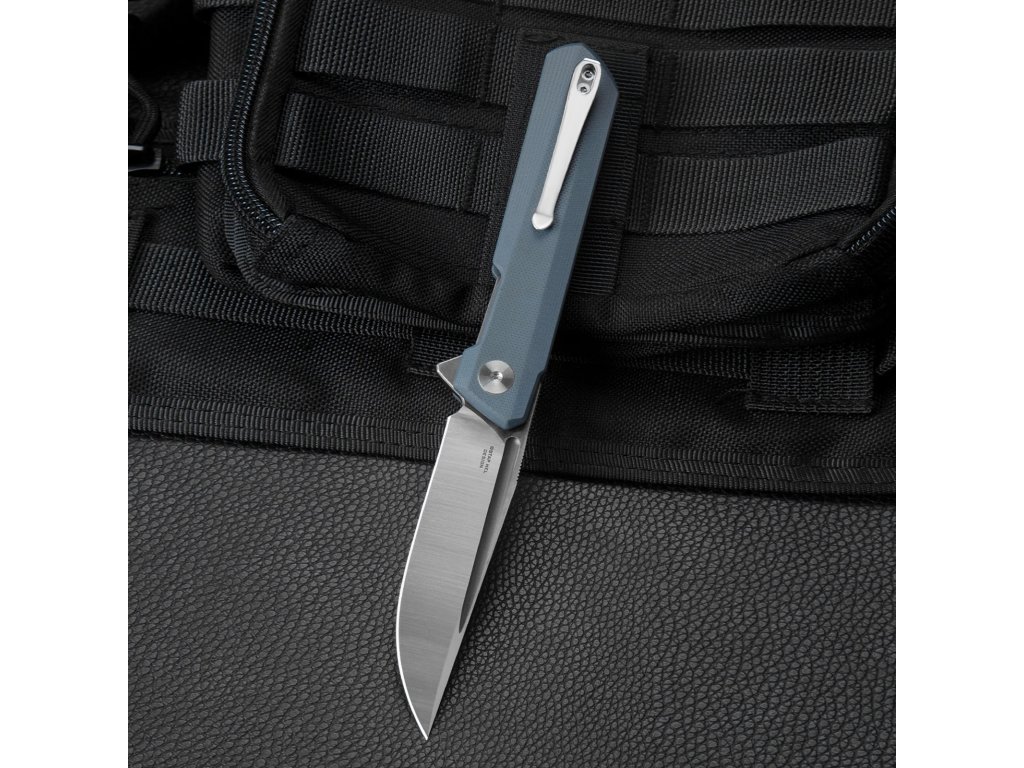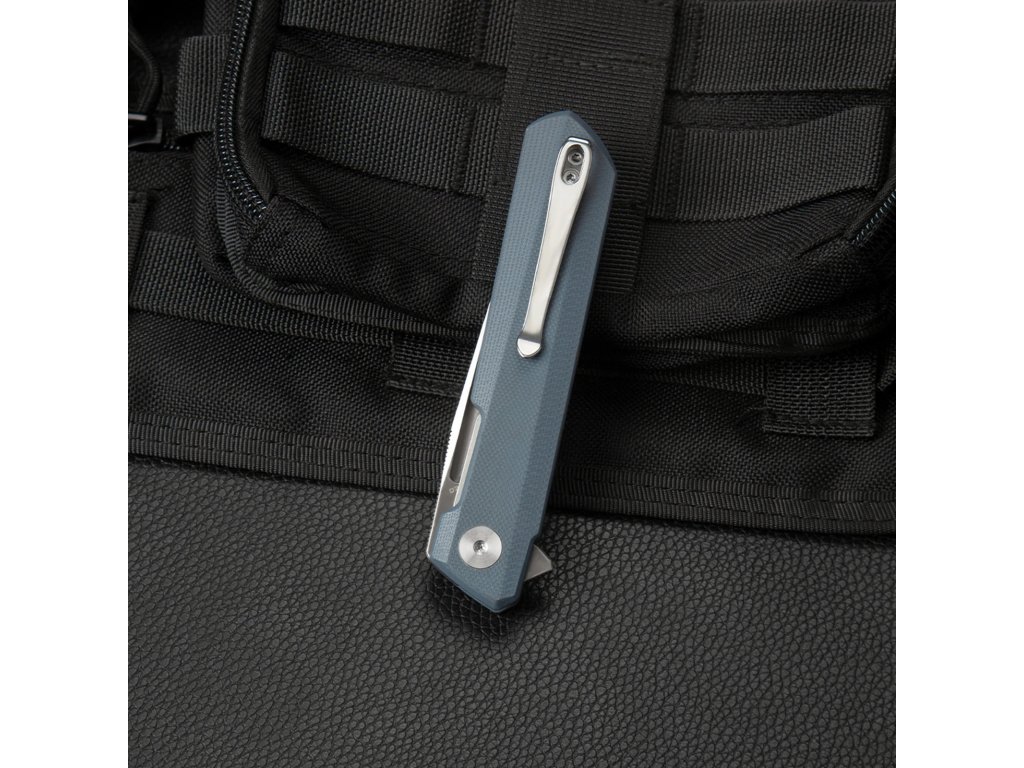 Bestechman Dundee BMK01F este un cuțit EDC de la producătorul renumit Bestech. Cuțitul de buzunar este ideal pentru utilizare zilnică și îl puteți lua cu dvs. oriunde mergeți. Lama, de lungime 8,5 cm, este realizată din oțel D2. Mânerul realizat din G10 de culoarea gri asigură o prindere confortabilă. Finisaj satinat clasic. Cuțitul pliabil are o blocare tip Liner Lock și o clemă pentru agățare. Degetul mare este tot ce aveți nevoie pentru a-l deschide, ceea ce face deschiderea convenabilă și rapidă (mecanism flipper).