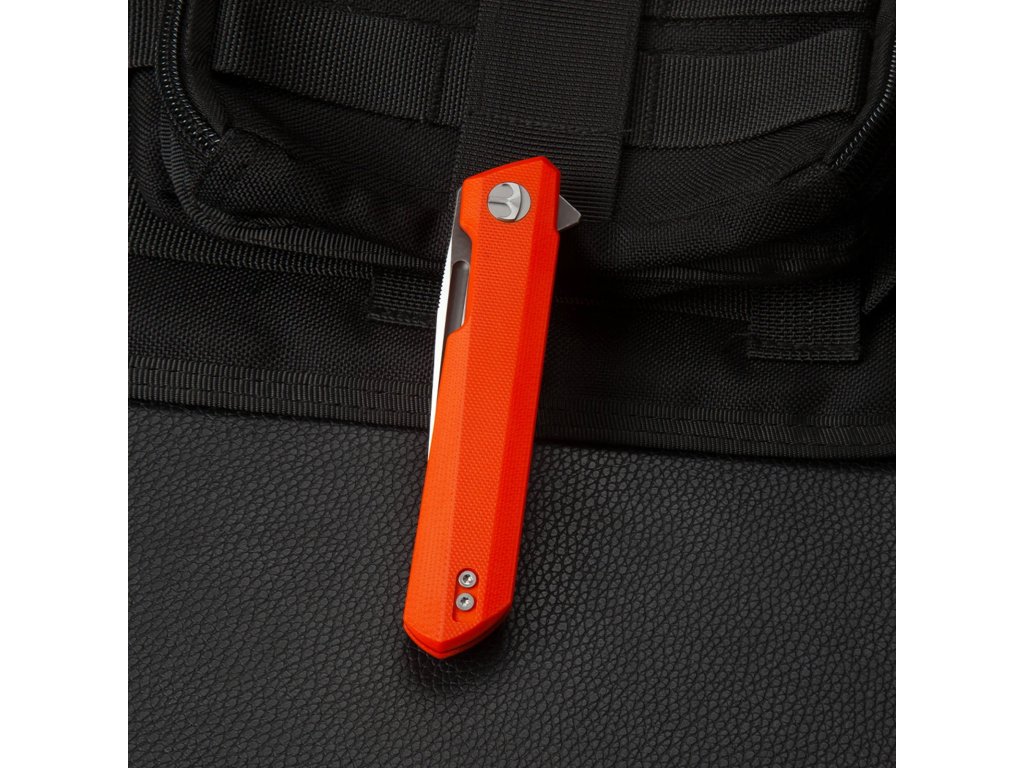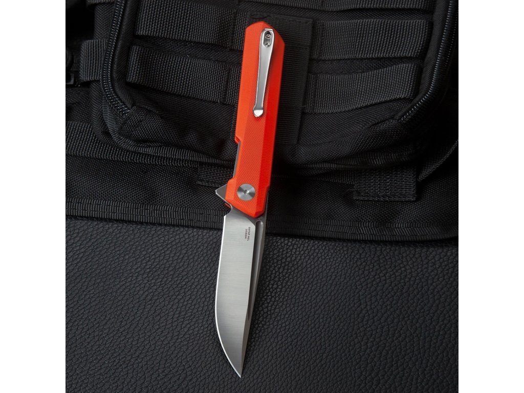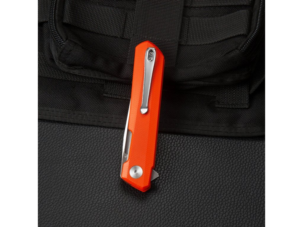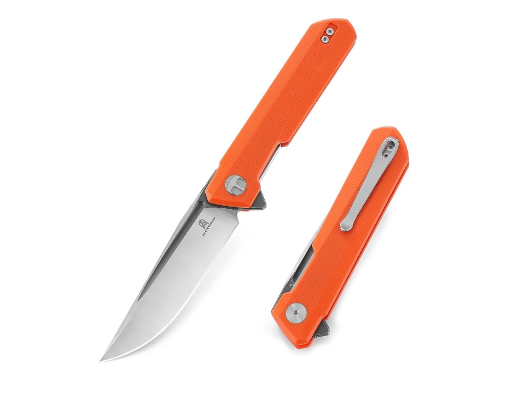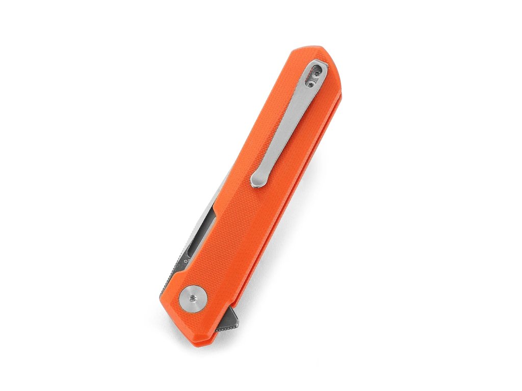 Bestechman Dundee BMK01H este un cuțit EDC de la producătorul renumit Bestech. Cuțitul de buzunar este ideal pentru utilizare zilnică și îl puteți lua cu dvs. oriunde mergeți. Lama, de lungime 8,5 cm, este realizată din oțel D2. Mânerul realizat din G10 de culoarea portocalie asigură o prindere confortabilă. Finisaj satinat clasic. Cuțitul pliabil are o blocare tip Liner Lock și o clemă pentru agățare. Degetul mare este tot ce aveți nevoie pentru a-l deschide, ceea ce face deschiderea convenabilă și rapidă (mecanism flipper).