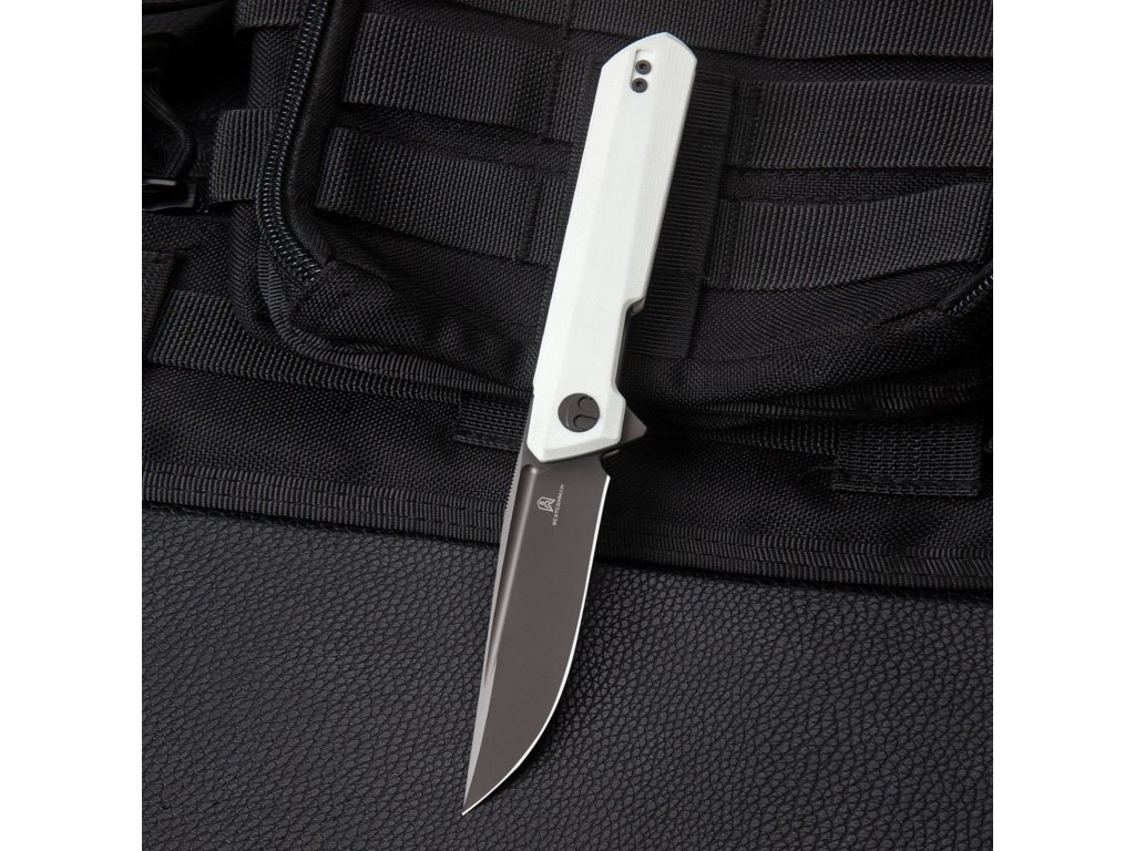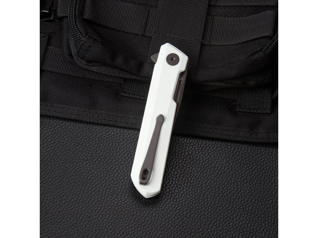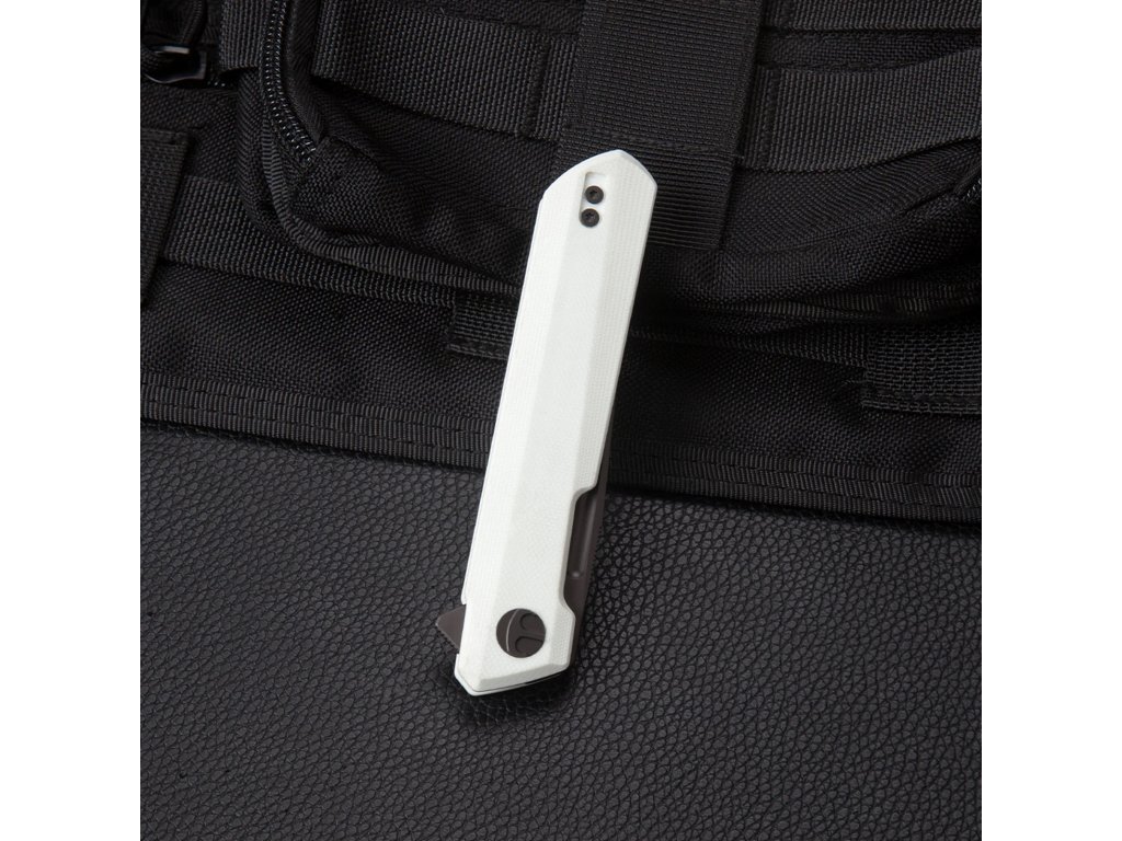 Bestechman Dundee BMK01I este un cuțit EDC de la producătorul renumit Bestech. Cuțitul de buzunar este ideal pentru utilizare zilnică și îl puteți lua cu dvs. oriunde mergeți. Lama, de lungime 8,5 cm, este realizată din oțel D2. Mânerul realizat din G10 de culoarea albă asigură o prindere confortabilă. Finisaj gri titan. Cuțitul pliabil are o blocare tip Liner Lock și o clemă pentru agățare. Degetul mare este tot ce aveți nevoie pentru a-l deschide, ceea ce face deschiderea convenabilă și rapidă (mecanism flipper).