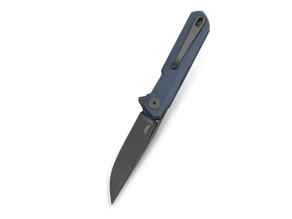Mânerul din G10 gri-albastru deschis este fin texturat și se simt confortabil în mână. Mini Dundee are o blocare a lamei tip Liner Lock și o clemă pentru agățare. Lama se mișcă foarte ușor și lin datorită rulmenților ceramici. Un singur deget este tot ce vă trebuie pentru a îl deschide folosind un flipper, deschiderea este confortabilă și rapidă.