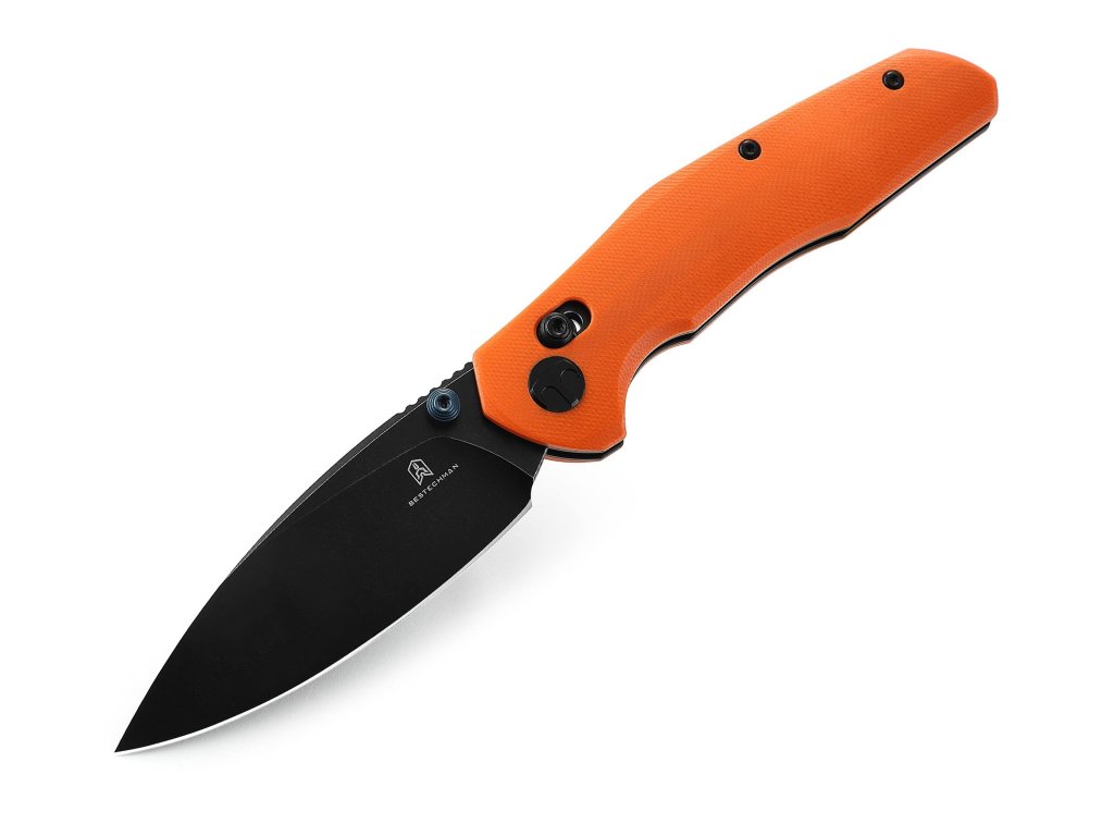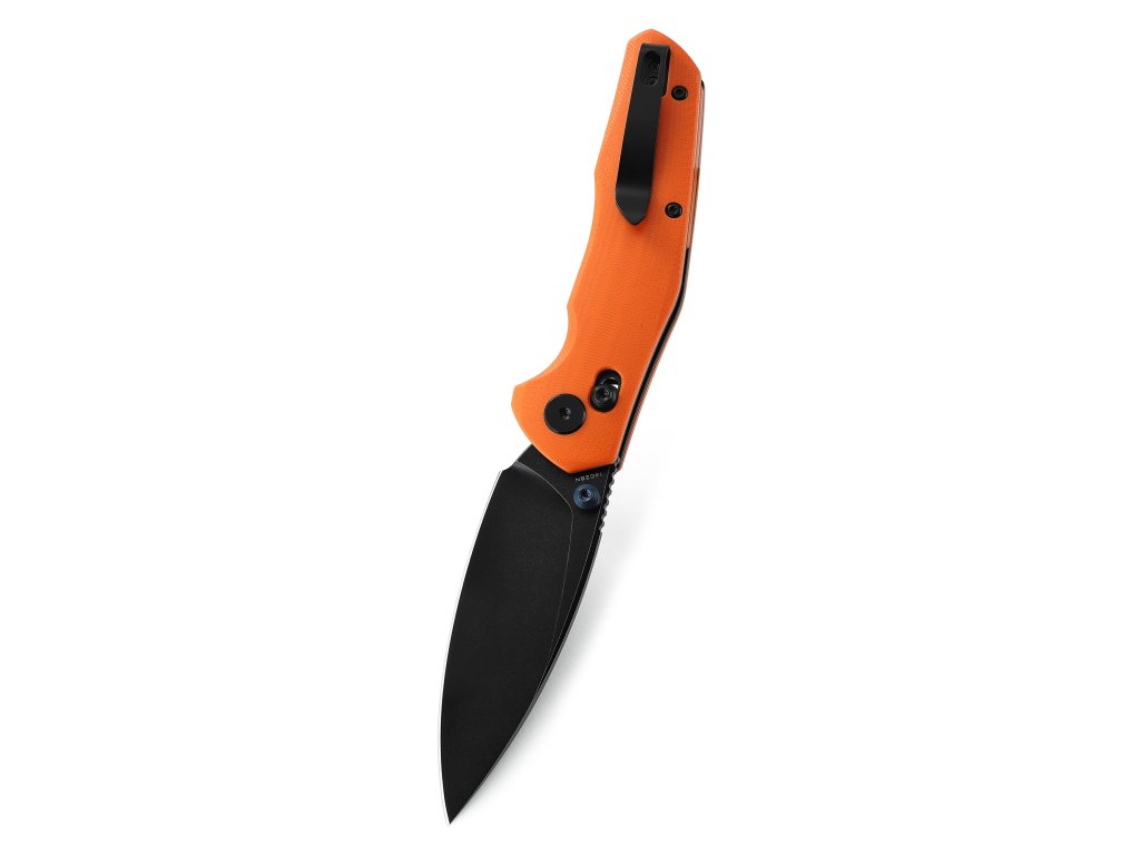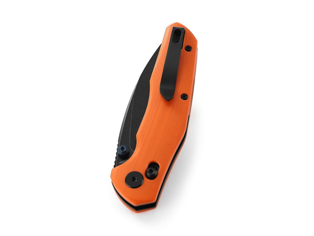 Bestechman Ronan BMK02H este un cuțit EDC de la producătorul renumit Bestech. Cuțitul de buzunar este ideal pentru utilizare zilnică și îl puteți lua cu dvs. oriunde mergeți. Lama de lungime 8,3 cm, în formă de drop point, este fabricată din oțel inoxidabil Sandvik 14C28N. Mânerul G10 portocaliu asigură o prindere confortabilă. Are un un finisaj stonewash titan negru. Cuțitul pliabil este echipat cu o blocare a lamei tip bar lock și o clemă mică pentru agățare.