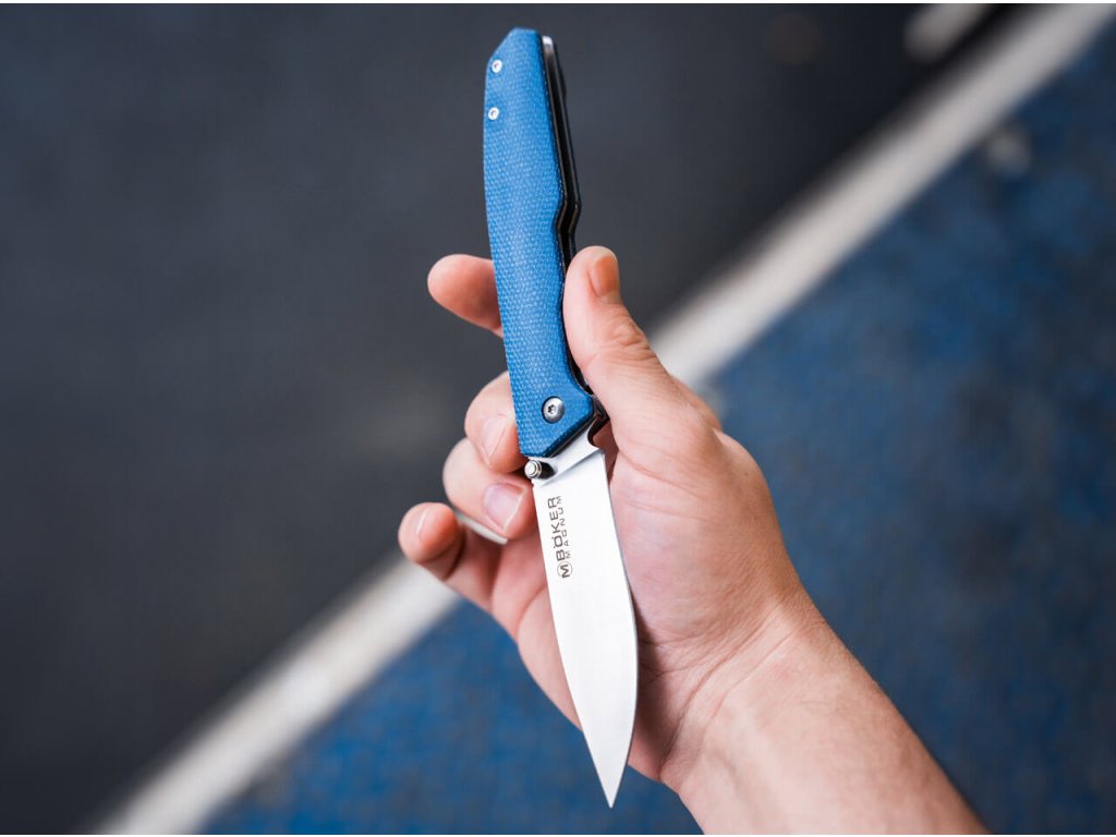Cuțitul de buzunar Böker Magnum Deep Blue Canvas este unul dintre cuțitele EDC simple care vă vor face activitățile zilnice mai plăcute. Cuțitul se deschide cu o ușurință maximă. Deschiderea lină a lamei din oțel inoxidabil 440A, cu finisaj satinat este asigurată de un știft pentru degetul mare. Privind mânerul ergonomic din micarta, s-ar putea să vă gândiți la marea albastru închis, de la care provine numele acestui model. Puteți lua cuțitul în orice mediu, fie că este vorba de o vacanță la mare sau de un weekend petrecut la cabană. Blocare a lamei tip liner lock. Cuțitul este echipat cu o clemă tip-up.