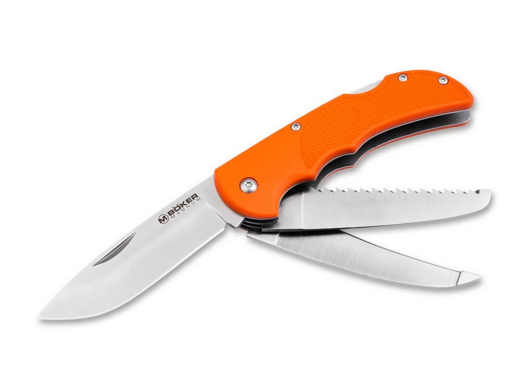Cuțitul de vânătoare Böker Magnum Hunting Line Triple Orange este un instrument complet util pentru toți vânătorii. Cuțit de vânătoare - combinație triplă - lamă, cârlig și fierăstrău pentru oase.