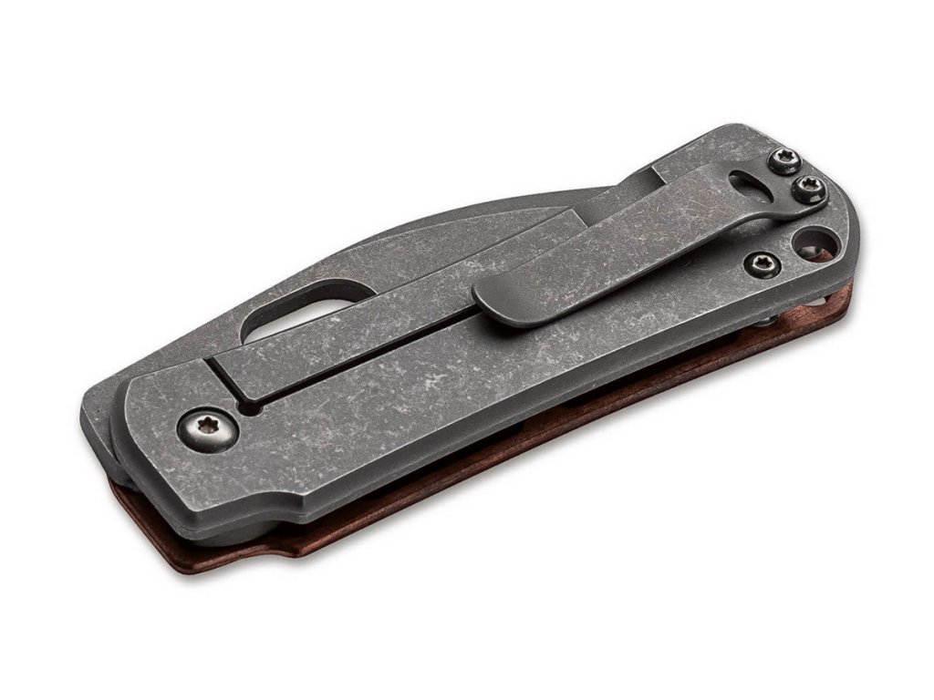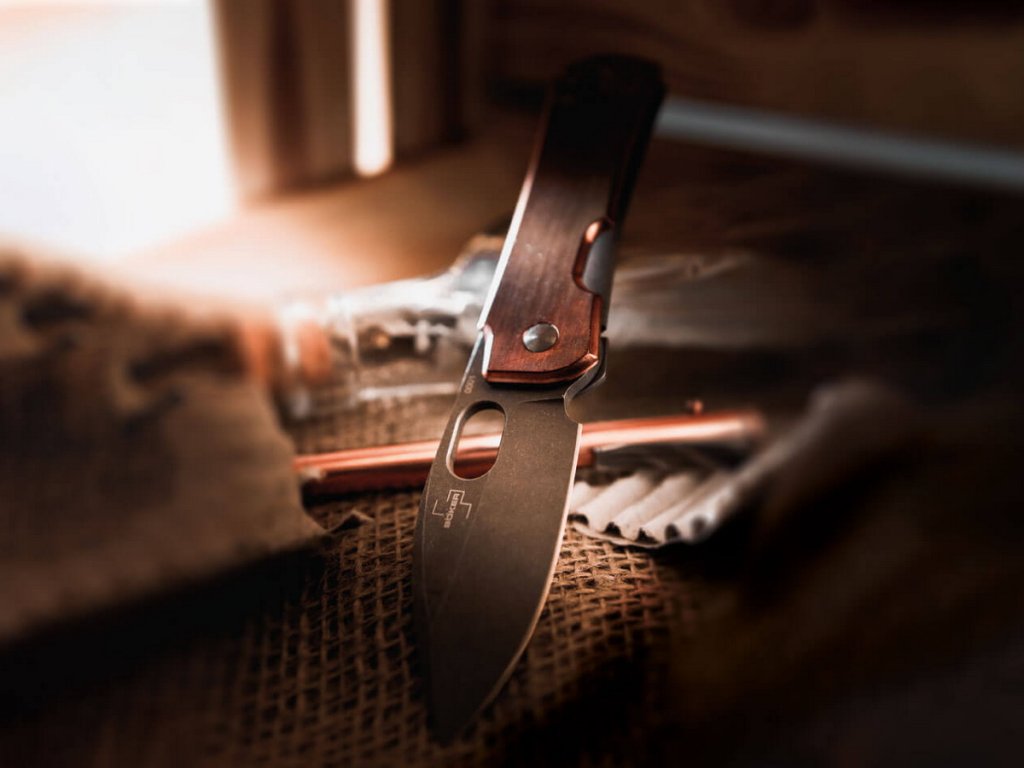 Cuțitul pliabil Böker Plus Gust Copper este un framelock mai mic cu mâner din cupru. Lama realizată din oțel pentru unelte D2 are o lungime de 7,3 cm și o dispune de un orificiu pentru deschiderea cu o singură mână, are un mecanism pe rulmenți. Mânerul este combinat - o parte este din cupru, cealaltă parte este din oțel inoxidabil cu finisaj Stonewash, ceea ce conferă cuțitului un aspect vintage interesant. Cuprul dobândește o patină în timp și prin utilizare. Cuțitul are o clemă pentru agățat și este livrat cu o teacă din Nailoni. Design - Serge Panchenko.