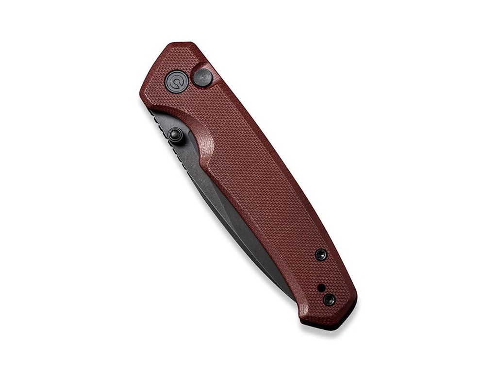 Civivi Altus este un cuțit pliabil, de dimensiuni medii, cu lamă cu formă de drop point. Lama din oțel inoxidabil Nitro-V are un finisaj negru Stonewash și un tăiș tip flat grind. Mânerul din G10 de culoare roșu burgundy are o suprafață texturată, care oferă o prindere excelentă. Blocare tip Button Lock. Clema din oțel inoxidabil se poate fixa pe ambele părți (dreapta/stânga). Deschidere cu o singură mână cu știftul de pe lamă. Deschiderea cuțitului este foarte ușoară și lină, lama este montată pe rulmenți ceramici.